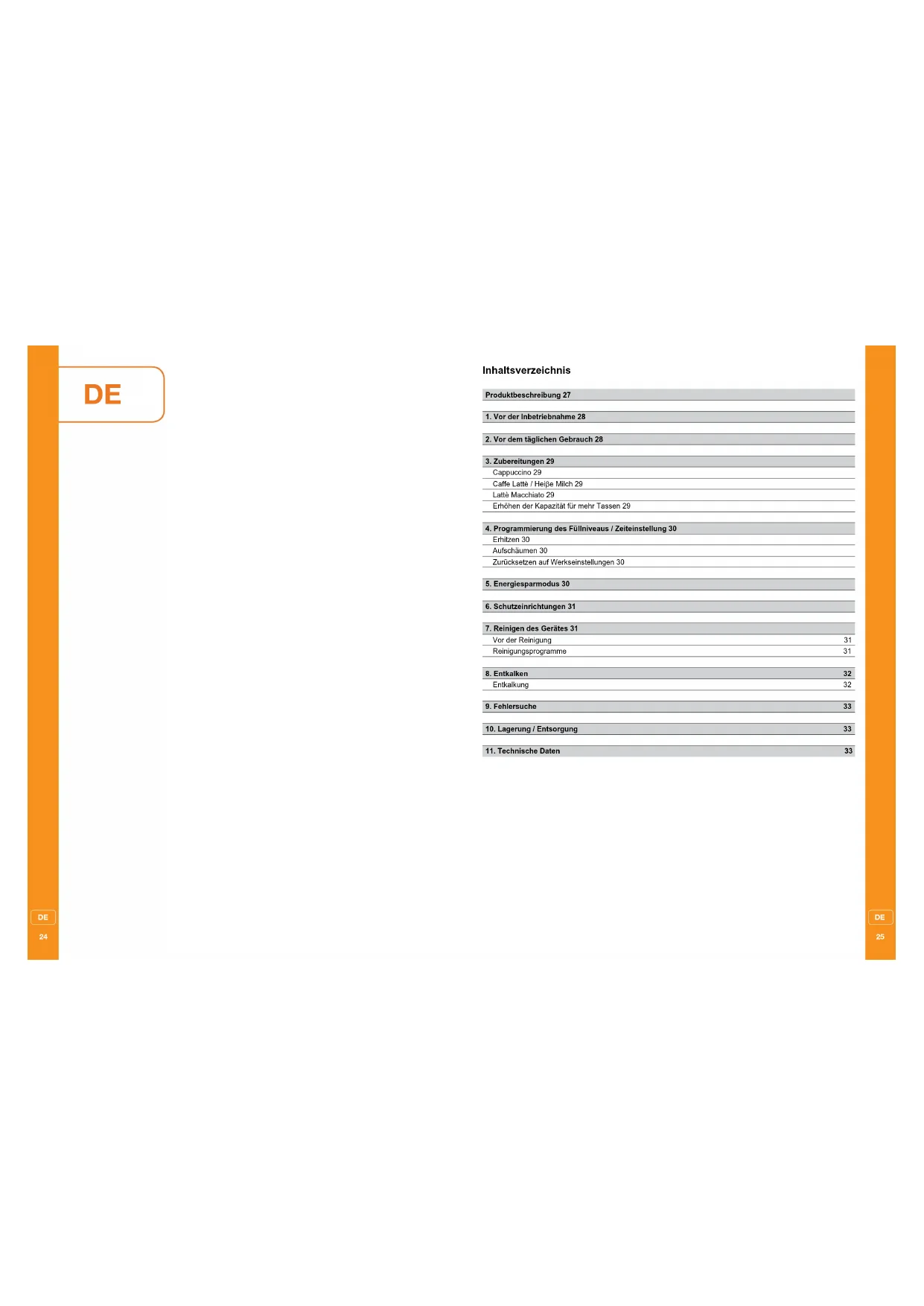 Erhitzen 30 Aufschäumen 30 Zurücksetzen auf Werkseinstellungen 30