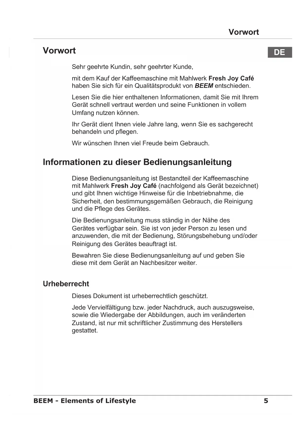 Fresh Joy Cafe - Kaffeemaschine BEEM - Kostenlose Bedienungsanleitung