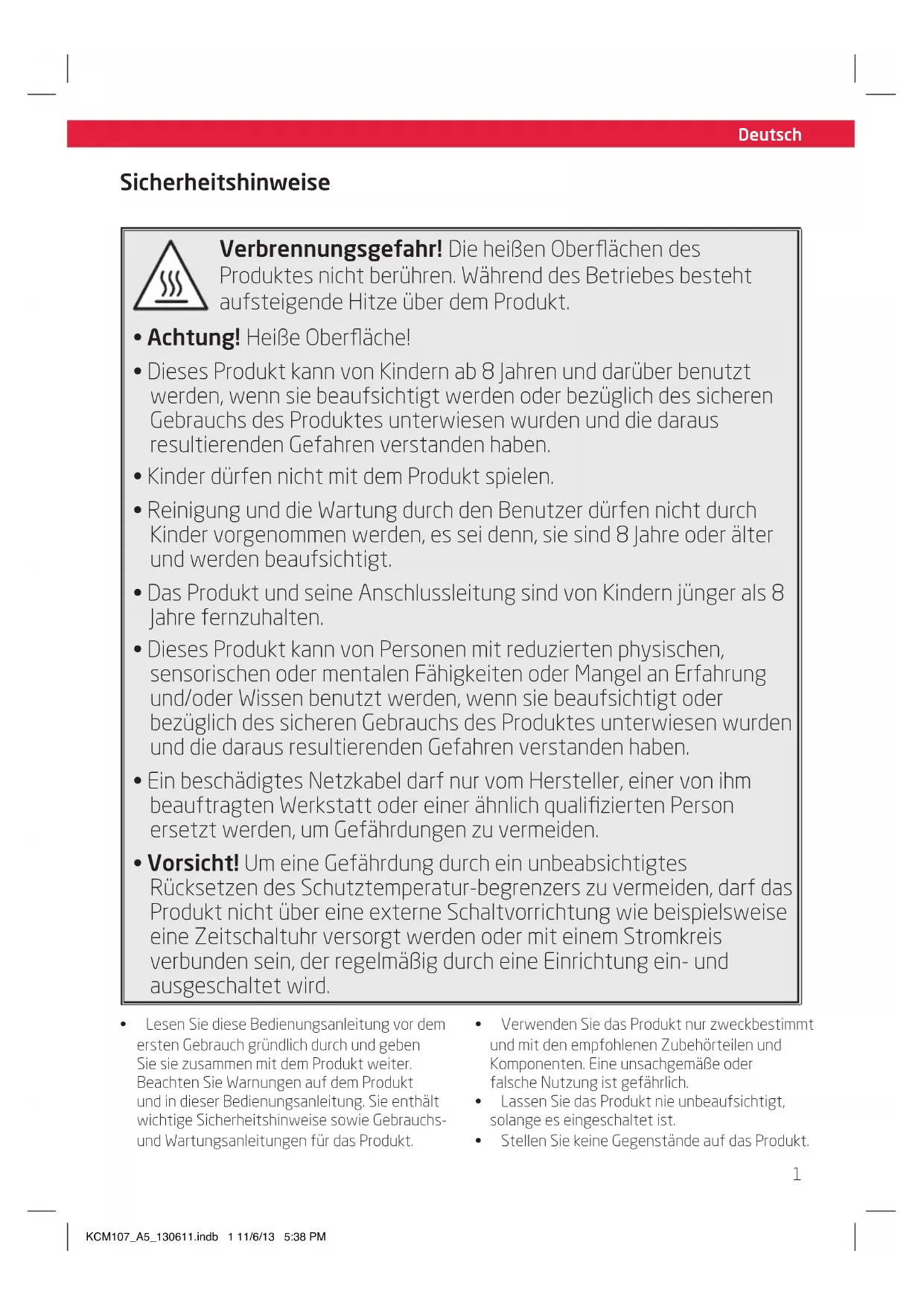 - Stellen Sie keine Gegenstände auf das Produkt. KCM107_A5_130611.indb 1 11/6/13 5:38 PMDeutsch