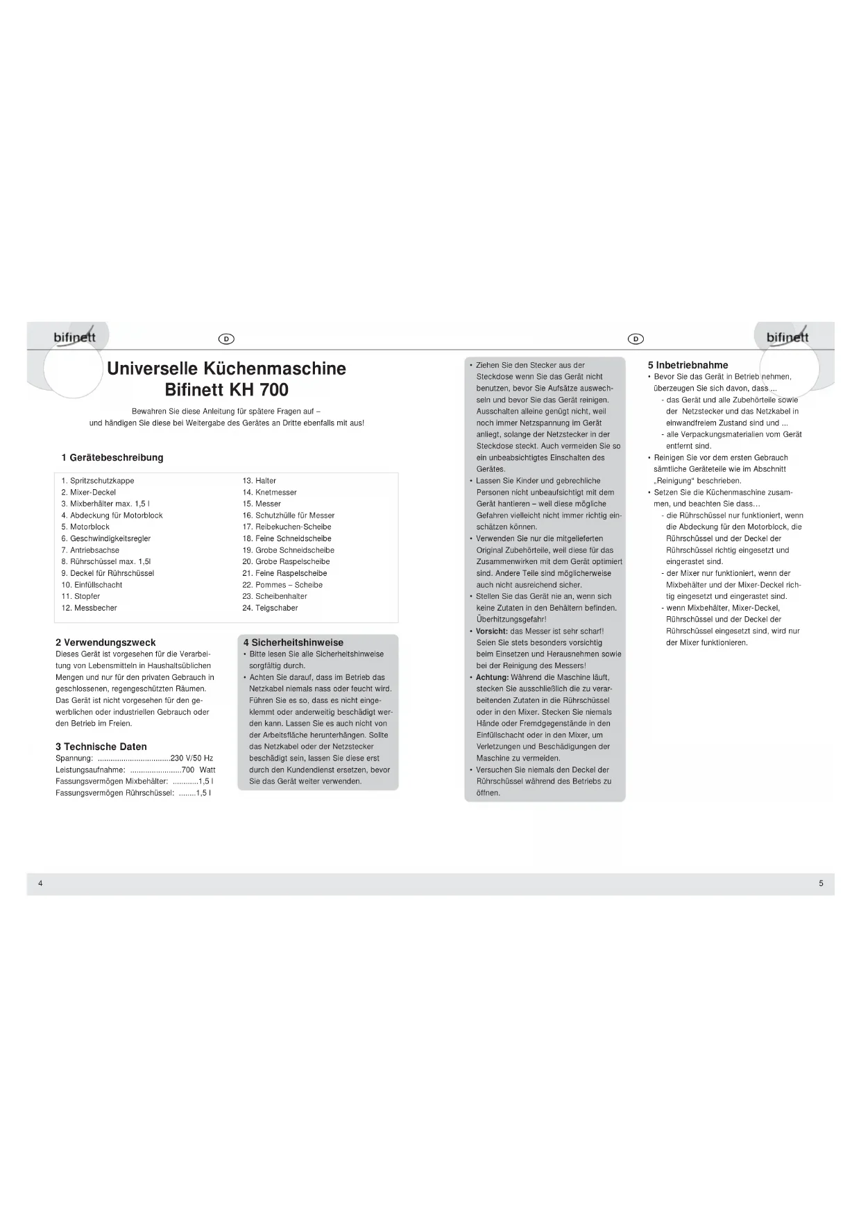 KH 700 - Küchenmaschine BIFINETT - Kostenlose Bedienungsanleitung