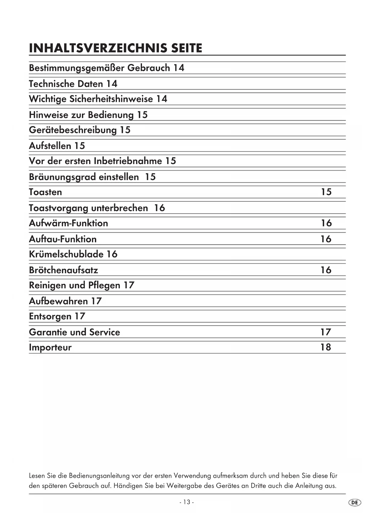 - Entleeren Sie in regelmäßigen Abständen die Krümelschublade 8, um Brandgefahr zu vermei- den. Aufbewahren