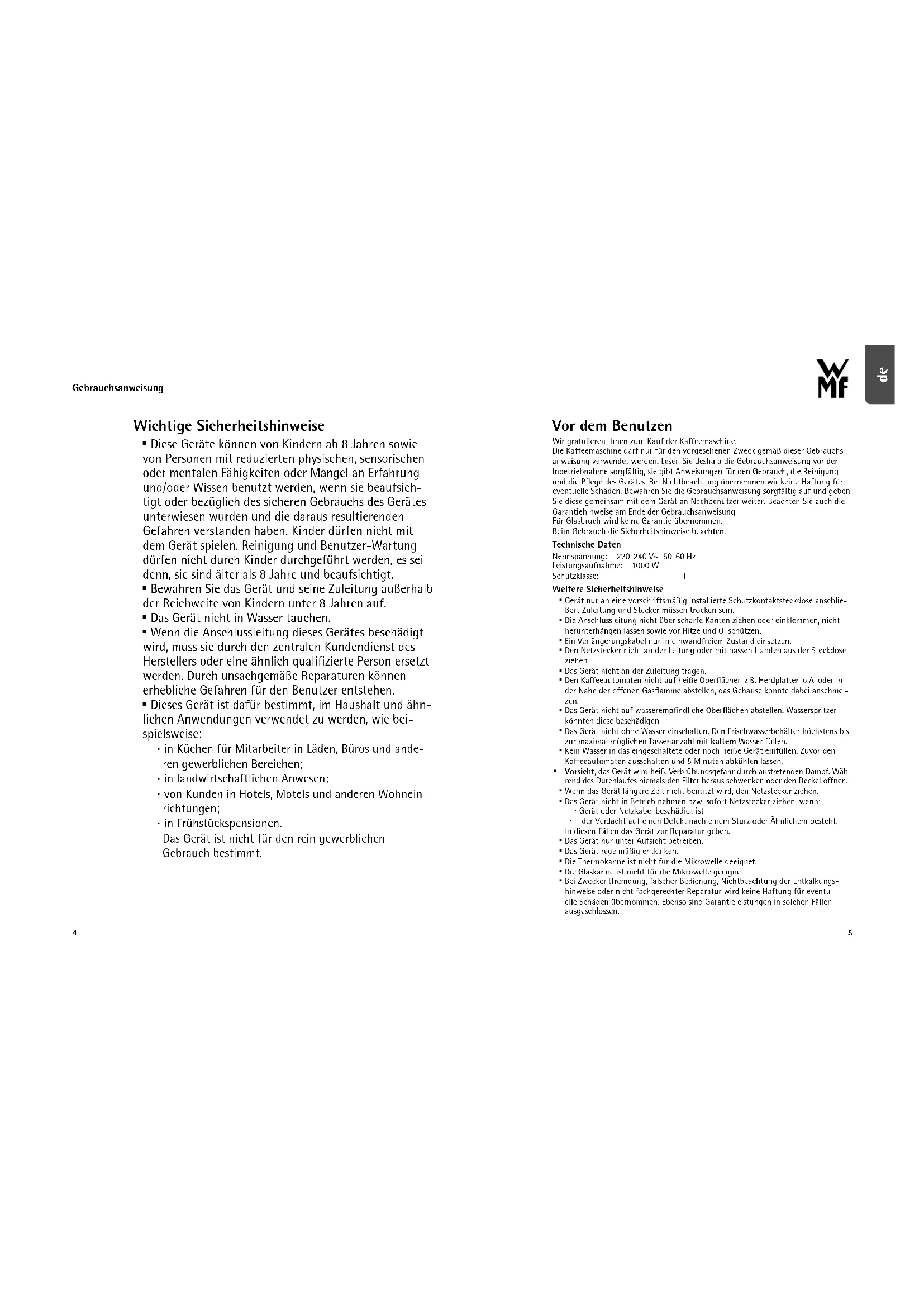 Terra Aroma - Kaffeemaschine WMF - Kostenlose Bedienungsanleitung