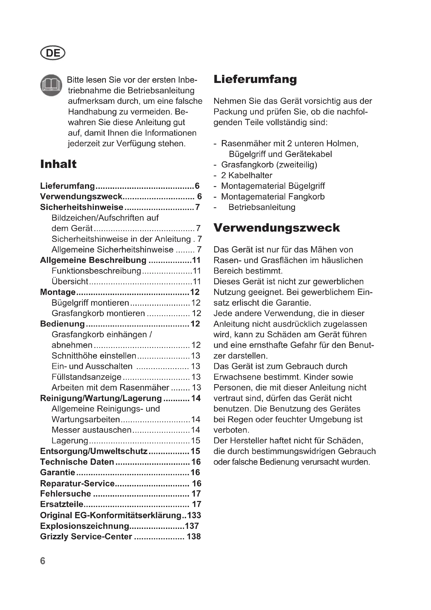 ERM 1434 G - Rasenmäher Grizzly - Kostenlose Bedienungsanleitung