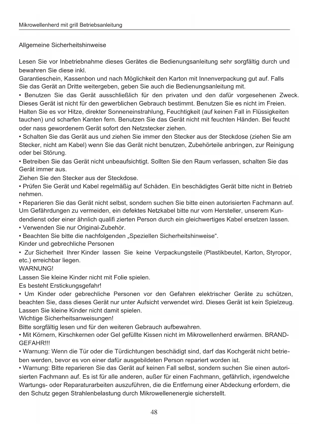 - MIKROWELLENHERD - BETRIEBSANLEITUNG