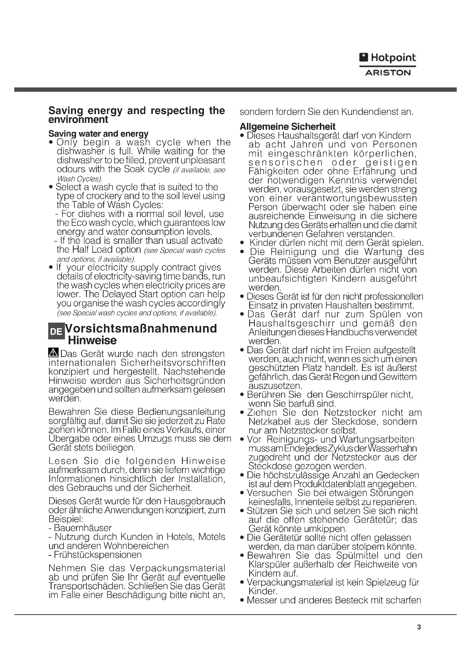 LUF 8M132 X EU - Geschirrspüler HOTPOINT ARISTON - Kostenlose Bedienungsanleitung