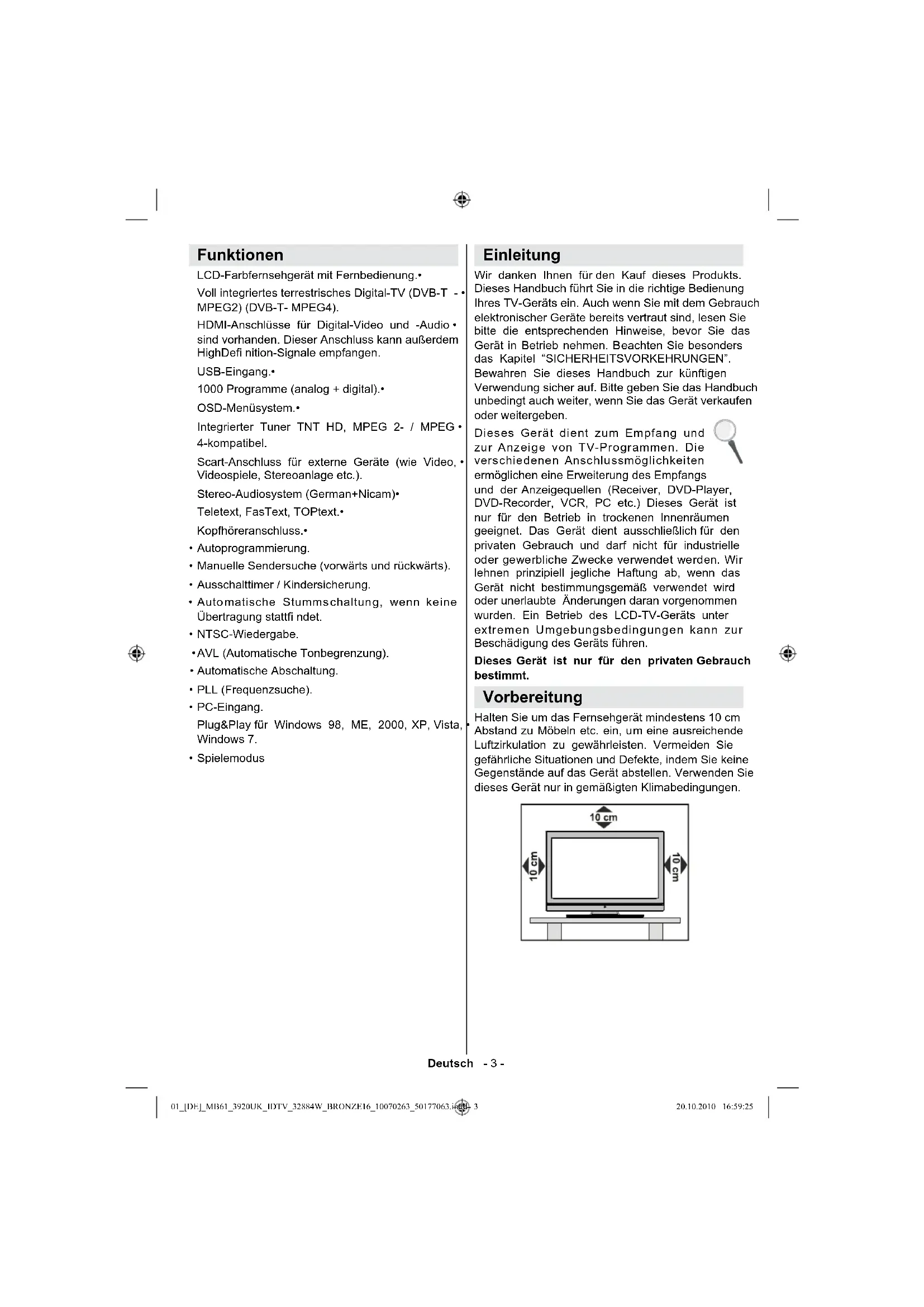 - 32LT32 Bedienungsanleitung Istruction Manual Mode d’emploi Istruzioni Per L'usoDeutsch - 1 - 01_[DE]_MB61_3920UK_IDTV_32884W_BRONZE16_10070263_50177063.indd 1 20.10.2010 16:59:24Deutsch - 2 - Inhalt Funktionen p. 3