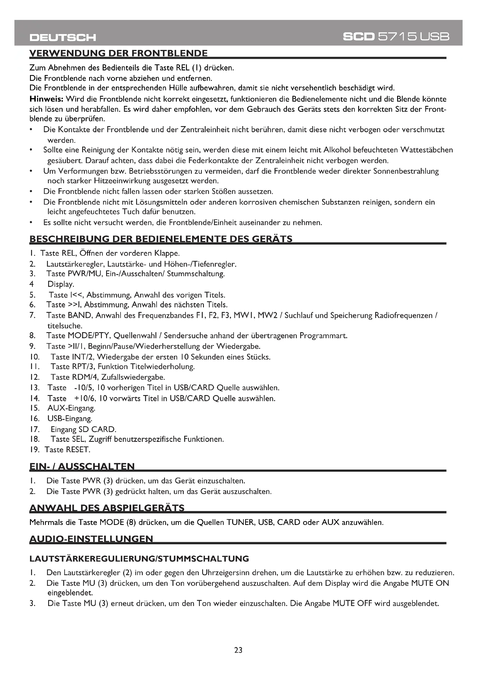 BEDIENUNGSANLEITUNG SDC 5715 USB Trevi