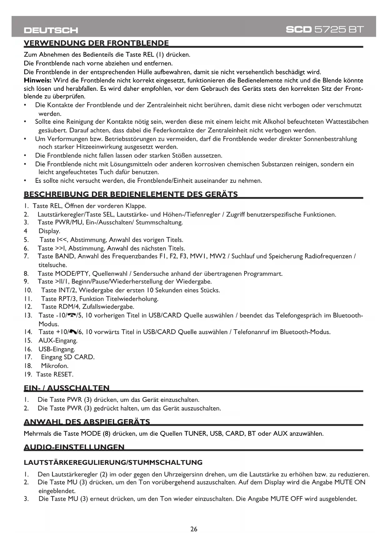 SCD 5725 BT - Autoradio Trevi - Kostenlose Bedienungsanleitung