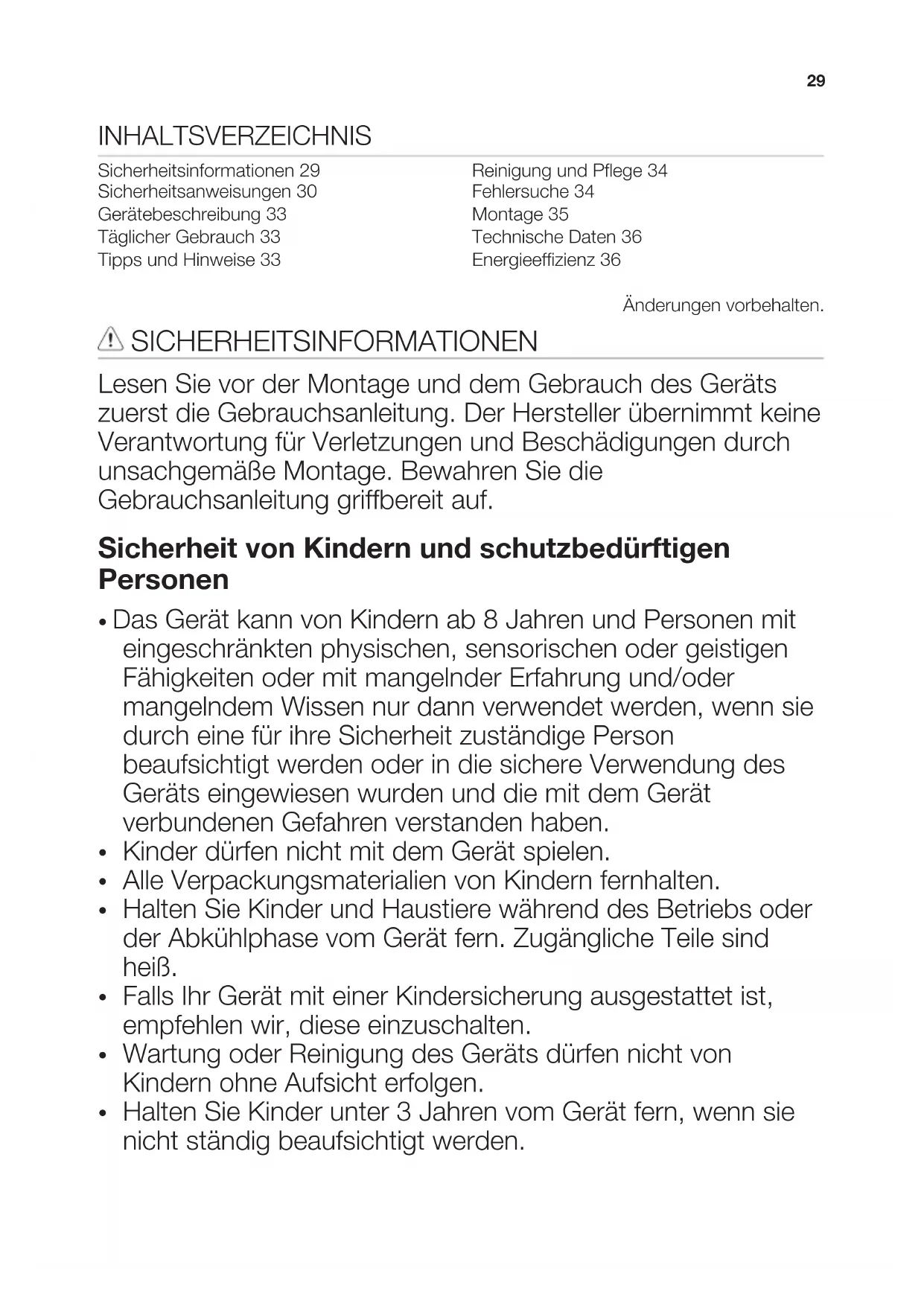 Halten Sie Kinder unter 3 Jahren vom Gerät fern, wenn sie nicht ständig beaufsichtigt werden. 29Allgemeine Sicherheit