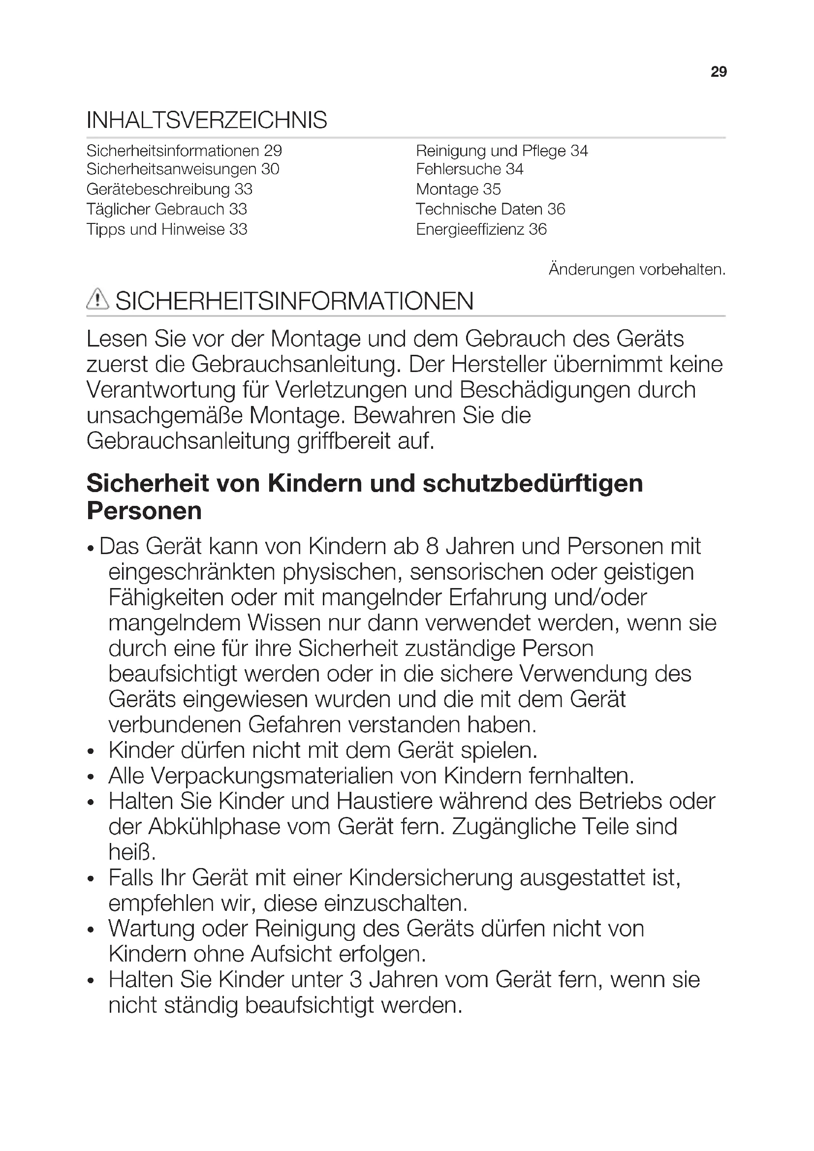 Halten Sie Kinder unter 3 Jahren vom Gerät fern, wenn sie nicht ständig beaufsichtigt werden. 29Allgemeine Sicherheit