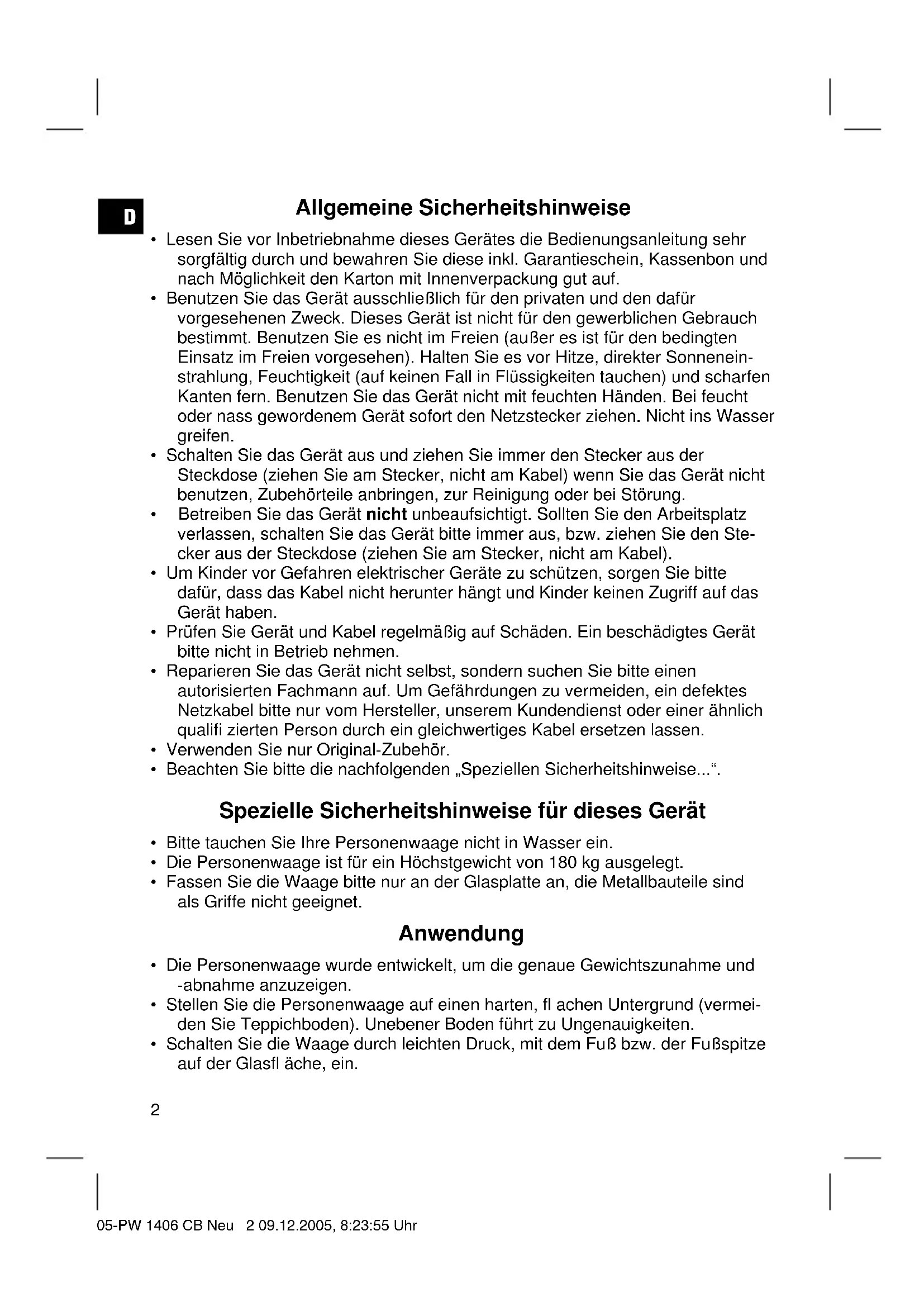 PW 1406 CB - Waagen BOMANN - Kostenlose Bedienungsanleitung