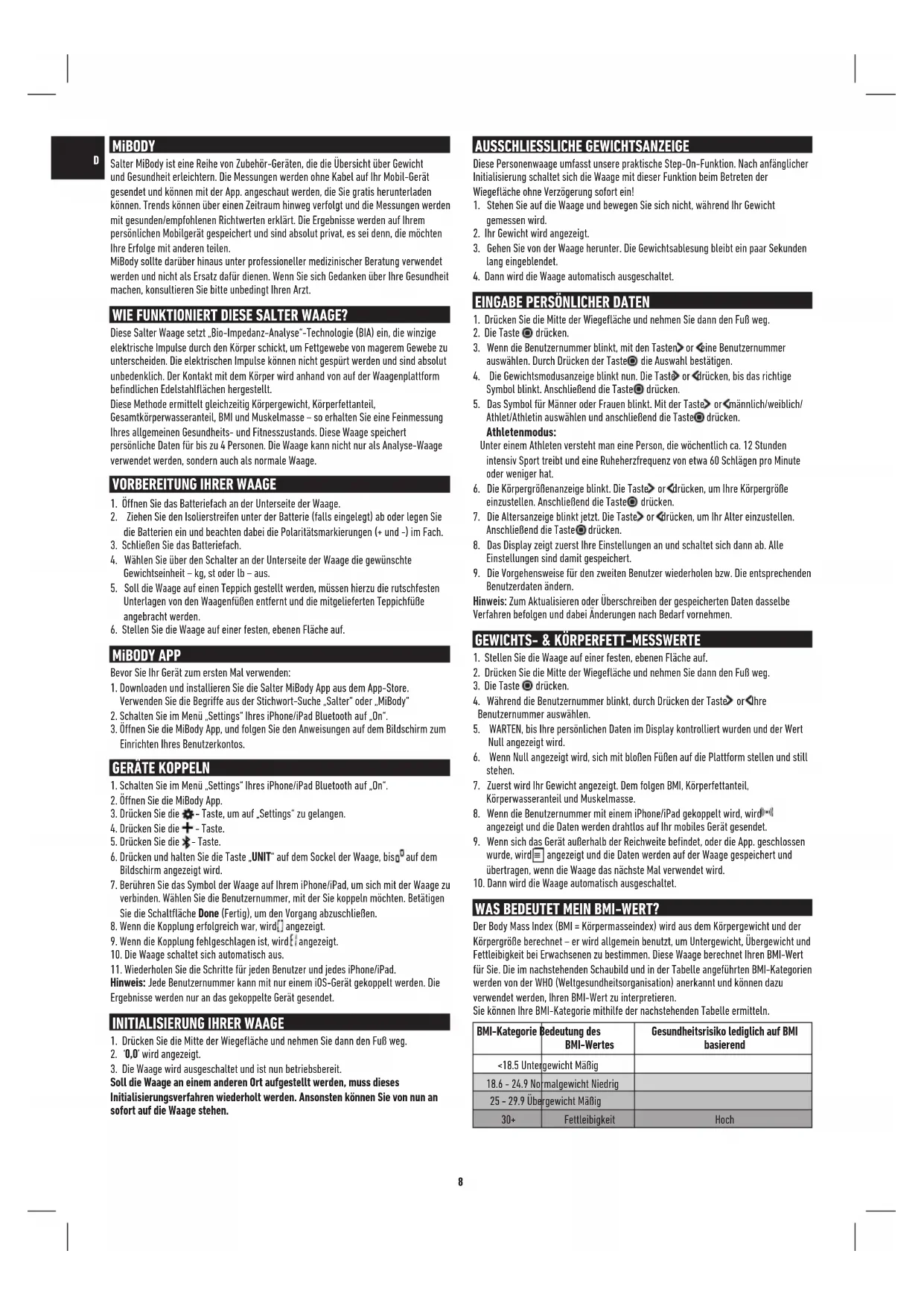 BEDIENUNGSANLEITUNG 9154 BK3R MiBody SALTER