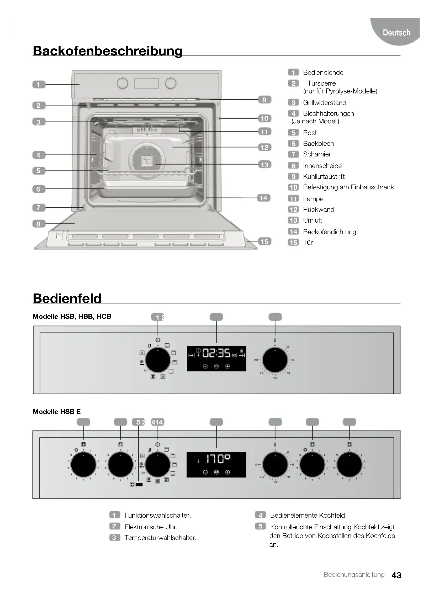Pyrolyse-Modelle HSB P, HCB P45 Bedienungsanleitung Deutsch Beschreibung der elektronischen Uhr