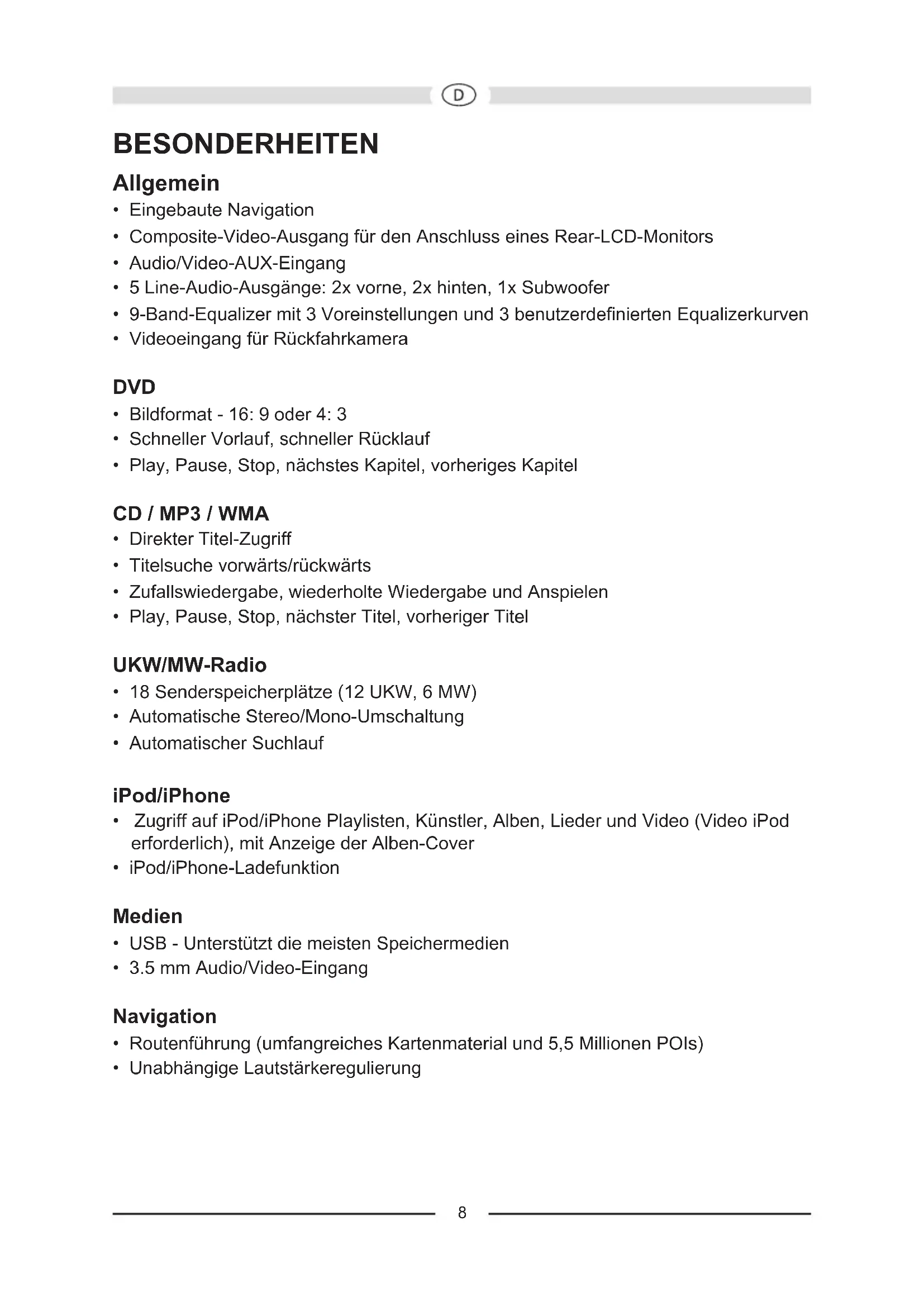 - iPod/iPhone-Ladefunktion Medien