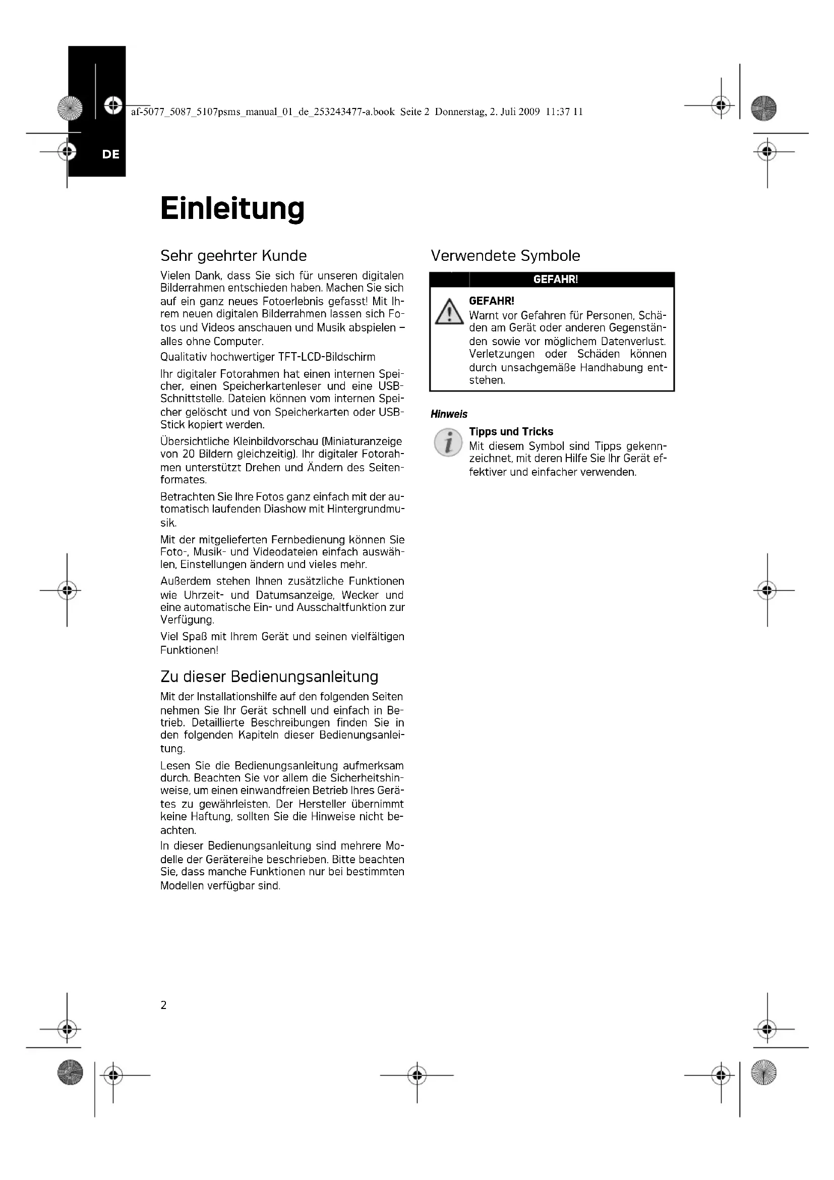 Vielen Dank, dass Sie sich für unseren digitalen Bilderrahmen entschieden haben. Machen Sie sich auf ein ganz neues Fotoerlebnis gefasst! Mit Ihrem neuen digitalen Bilderrahmen lassen sich Fotos und Videos anschauen und Musik abspielen – alles ohne Computer.