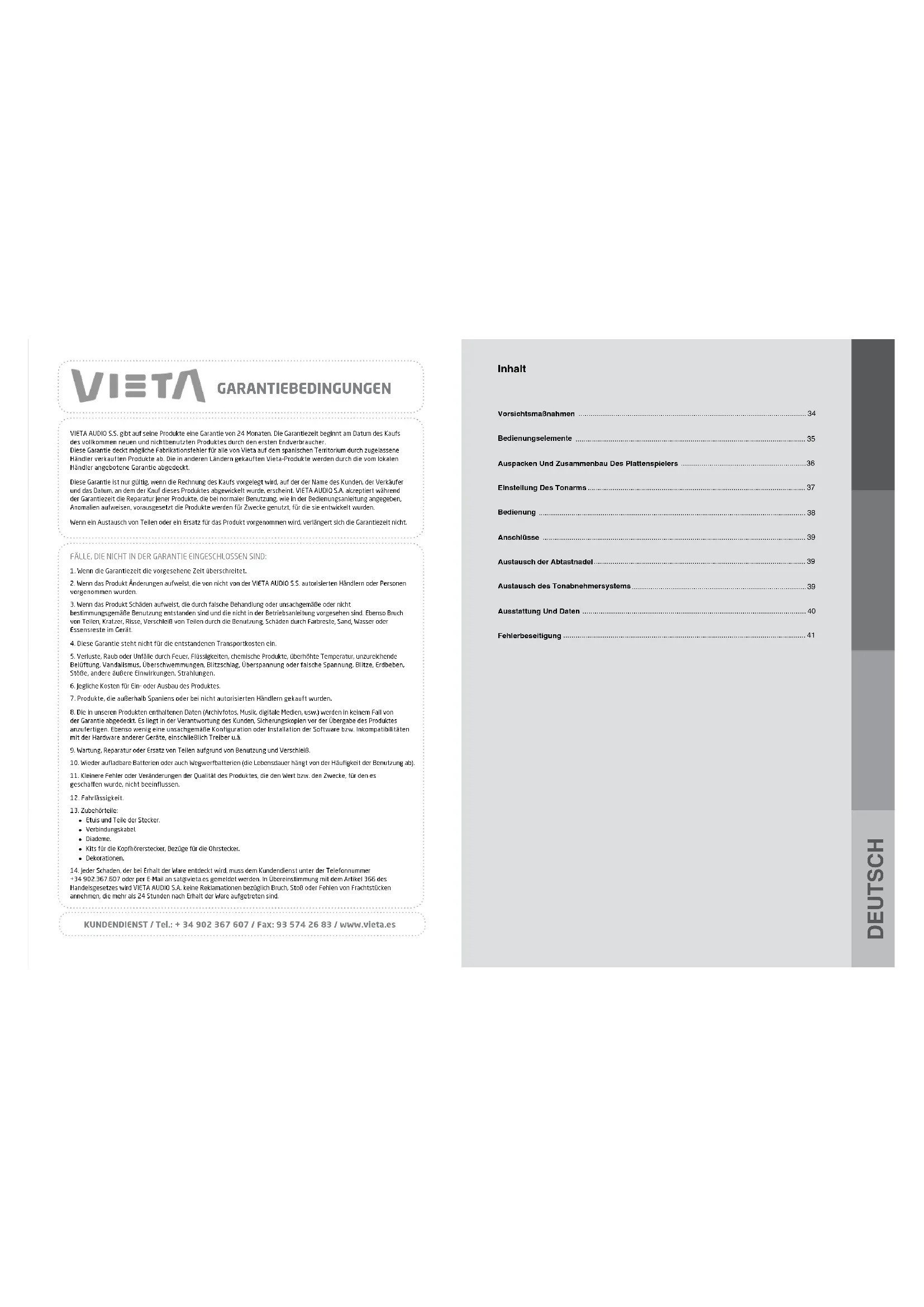 KUNDENDIENST/Tel.:+34902367607/Fax:935742683/www.vieta.es