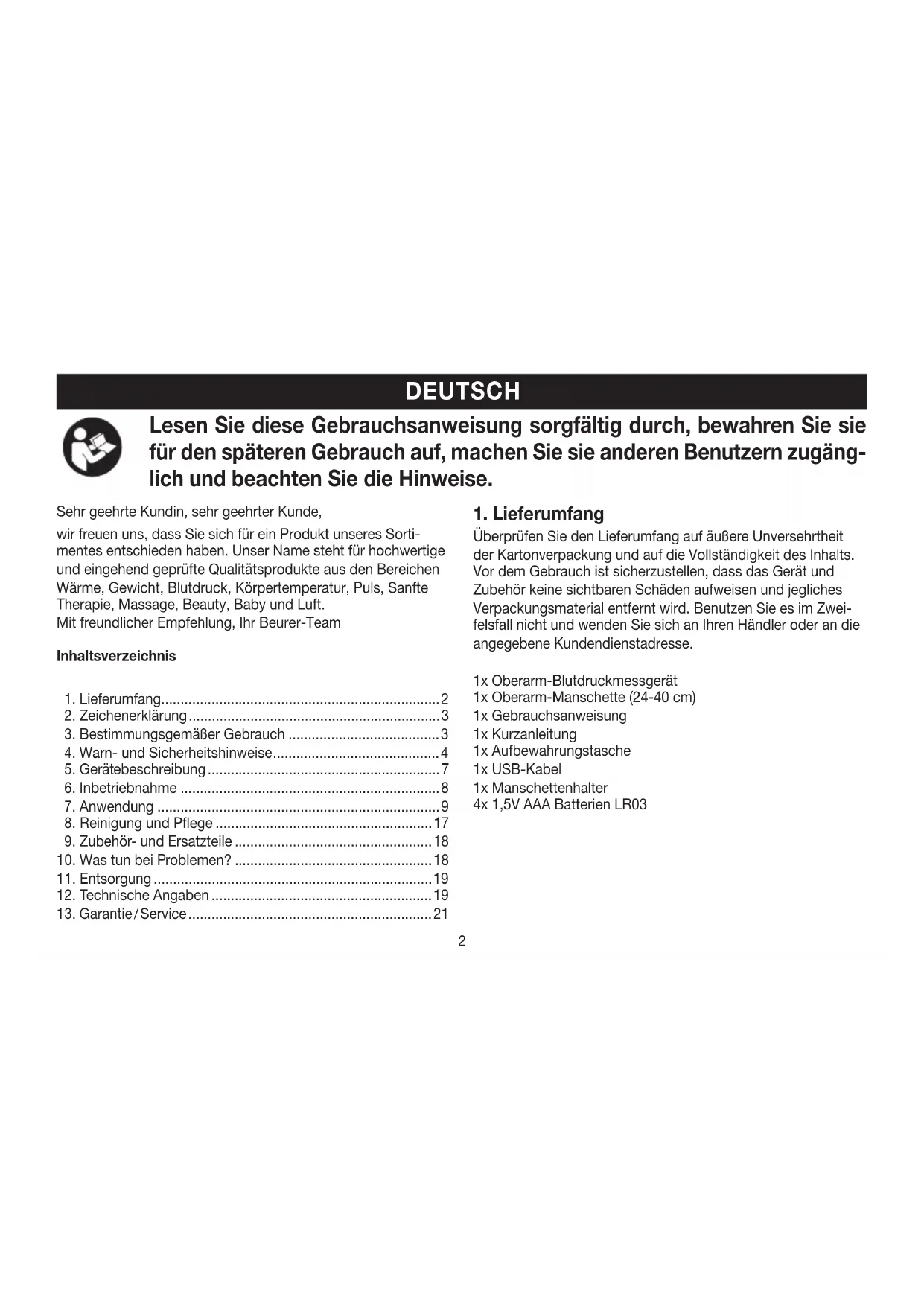 - Lieferumfang. 2