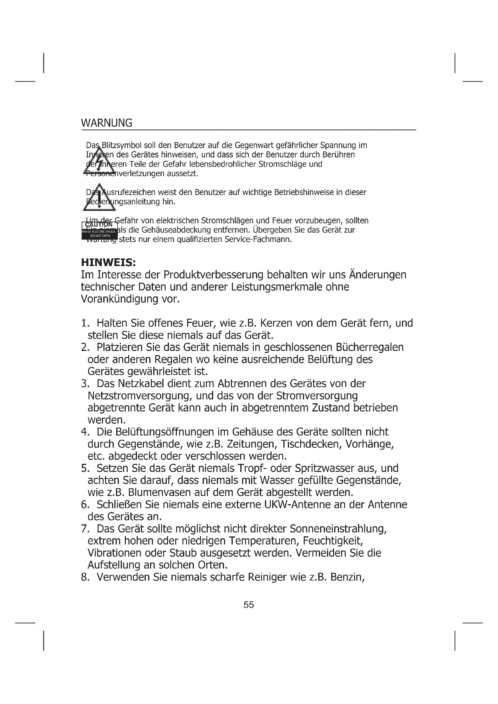 BEDIENUNGSANLEITUNGAVERTISSEMENT
