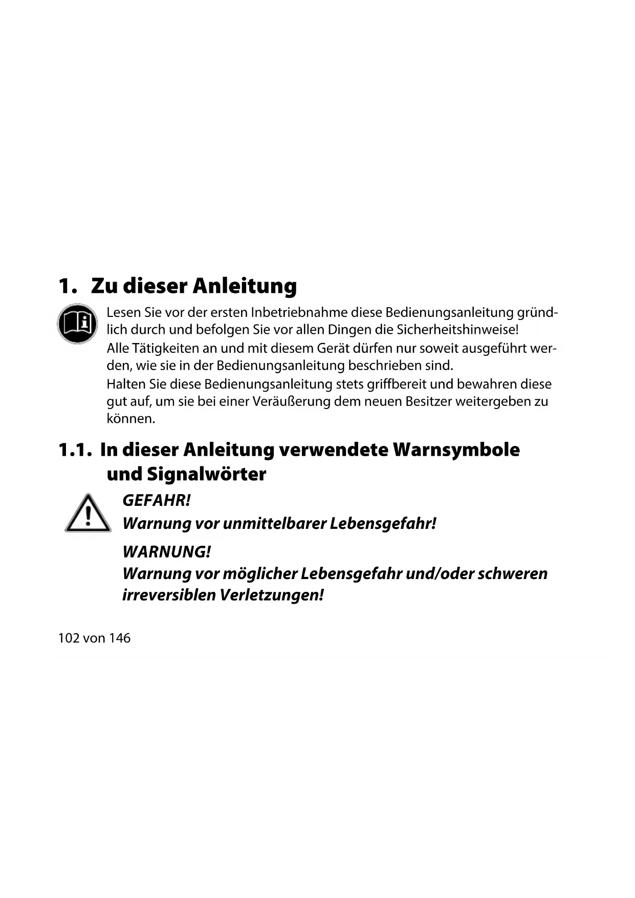 1.1. In dieser Anleitung verwendete Warnsymbole und Signalwörter .. 102