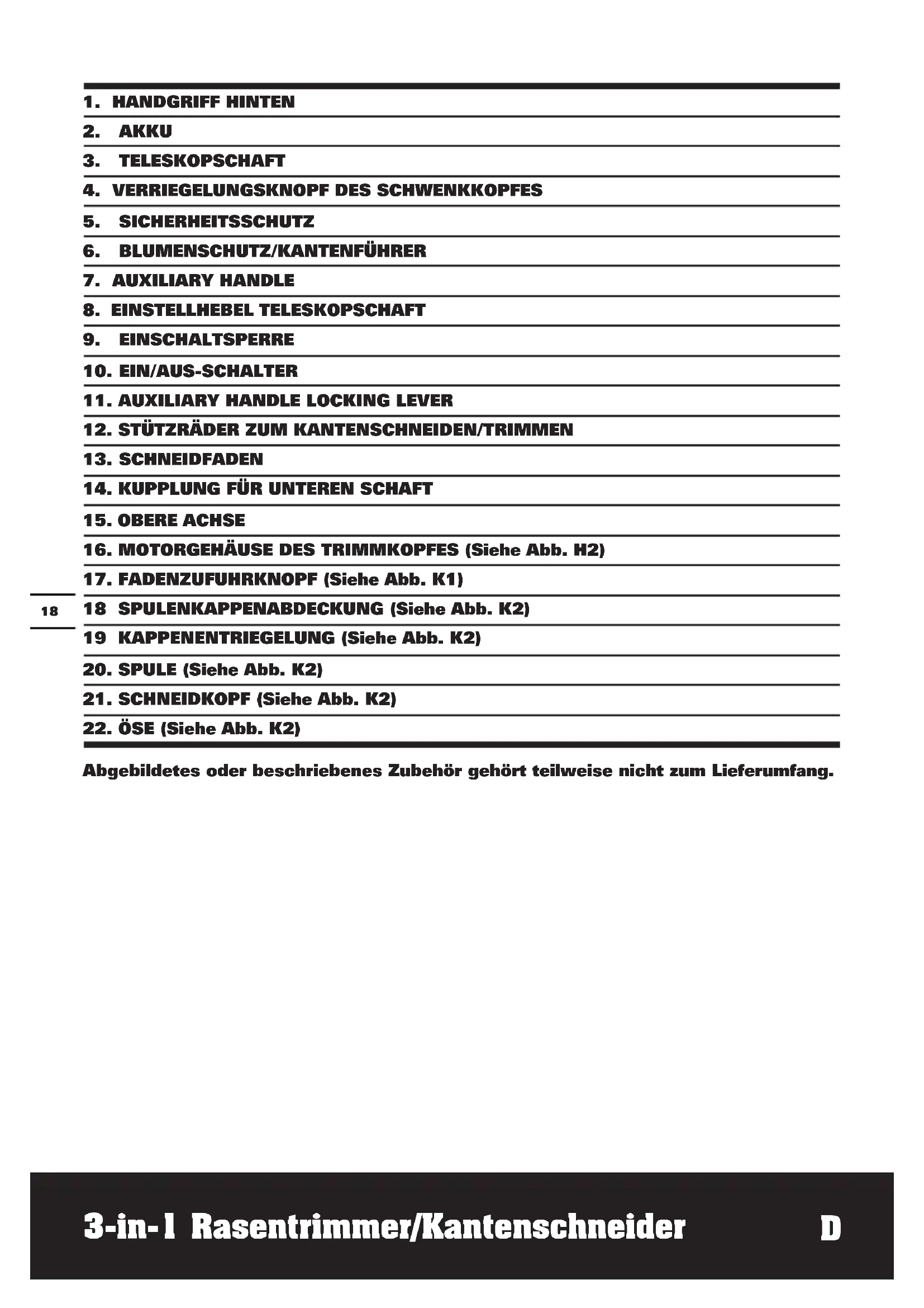 Abgebildetes oder beschriebenes Zubehör gehört teilweise nicht zum Lieferumfang.19 3-in-1 Rasentrimmer/Kantenschneider