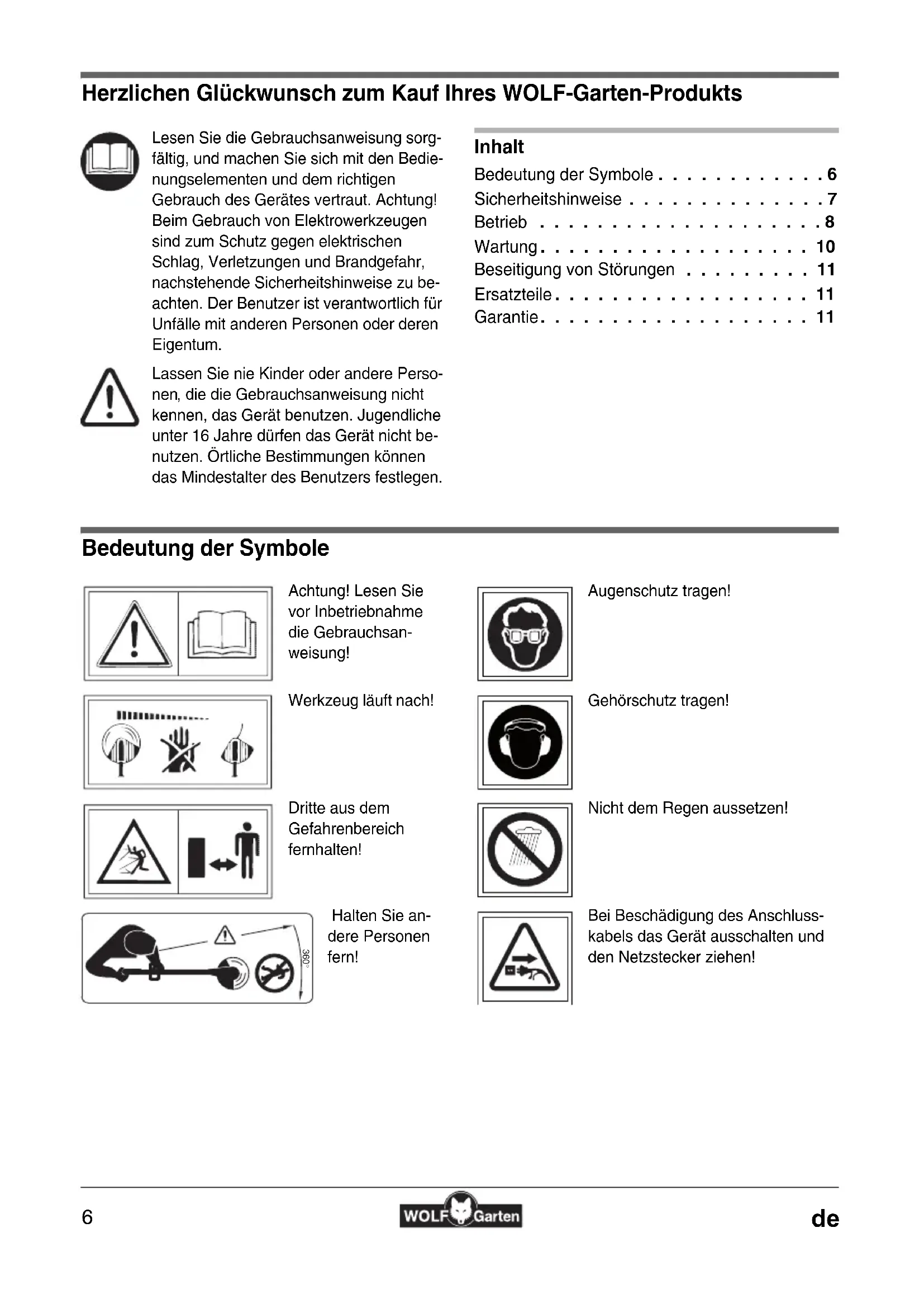 Herzlichen Glückwunsch zum Kauf Ihres WOLF-Garten-Produkts Inhalt Bedeutung der Symbole