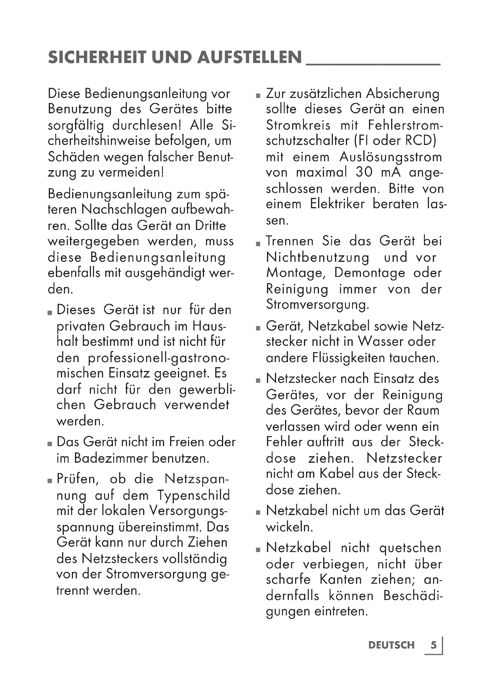 SICHERHEIT UND AUFSTELLEN ___________________