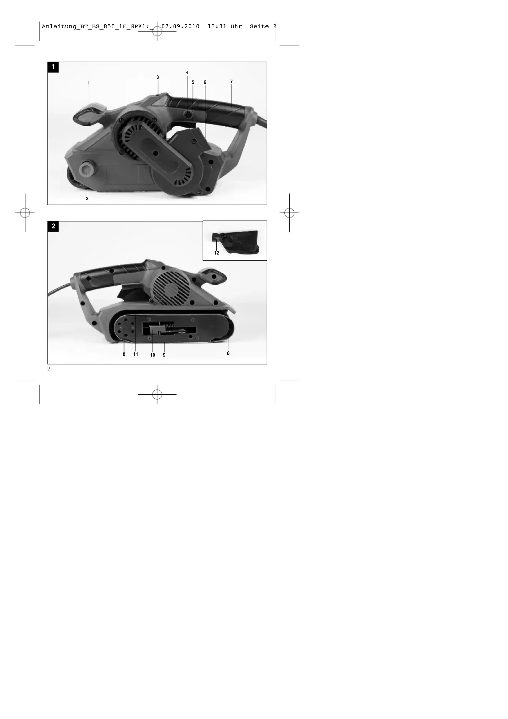 (Bild 3/Pos. 12) Schieben Sie den Staubfangsack (12) auf den Anschluss für Staubabsaugung (6). Das Entfernen des Staubfangsacks erfolgt in umgekehrter Reihenfolge. Die Staubabsaugung erfolgt direkt über das Schleifband in den Staubfangsack. Achtung! Die Benutzung des Staubfangsackes ist aus Gesundheitsgründen unbedingt erforderlich. Anleitung_BT_BS_850_1E_SPK1:_ 02.09.2010 13:31 Uhr Seite 67