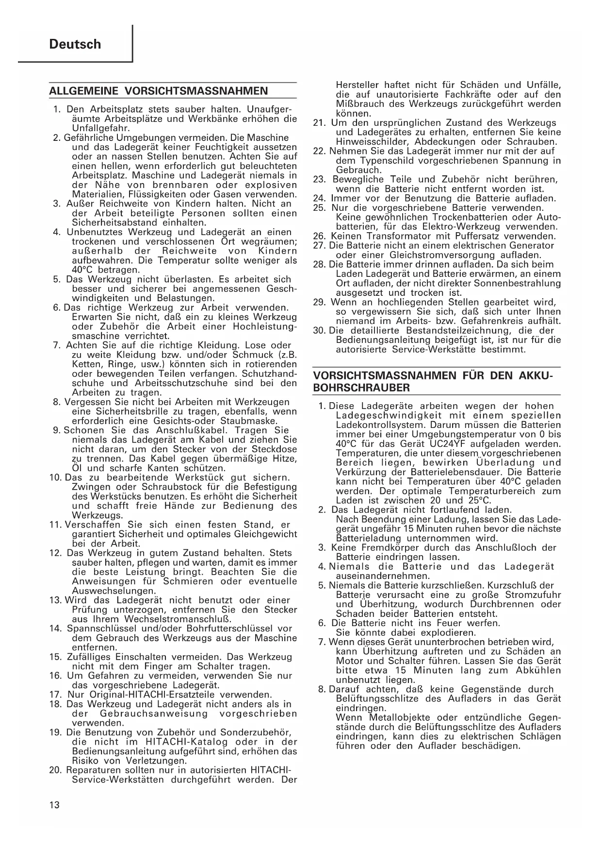 17. Nur Original-HITACHI-Ersatzteile verwenden.