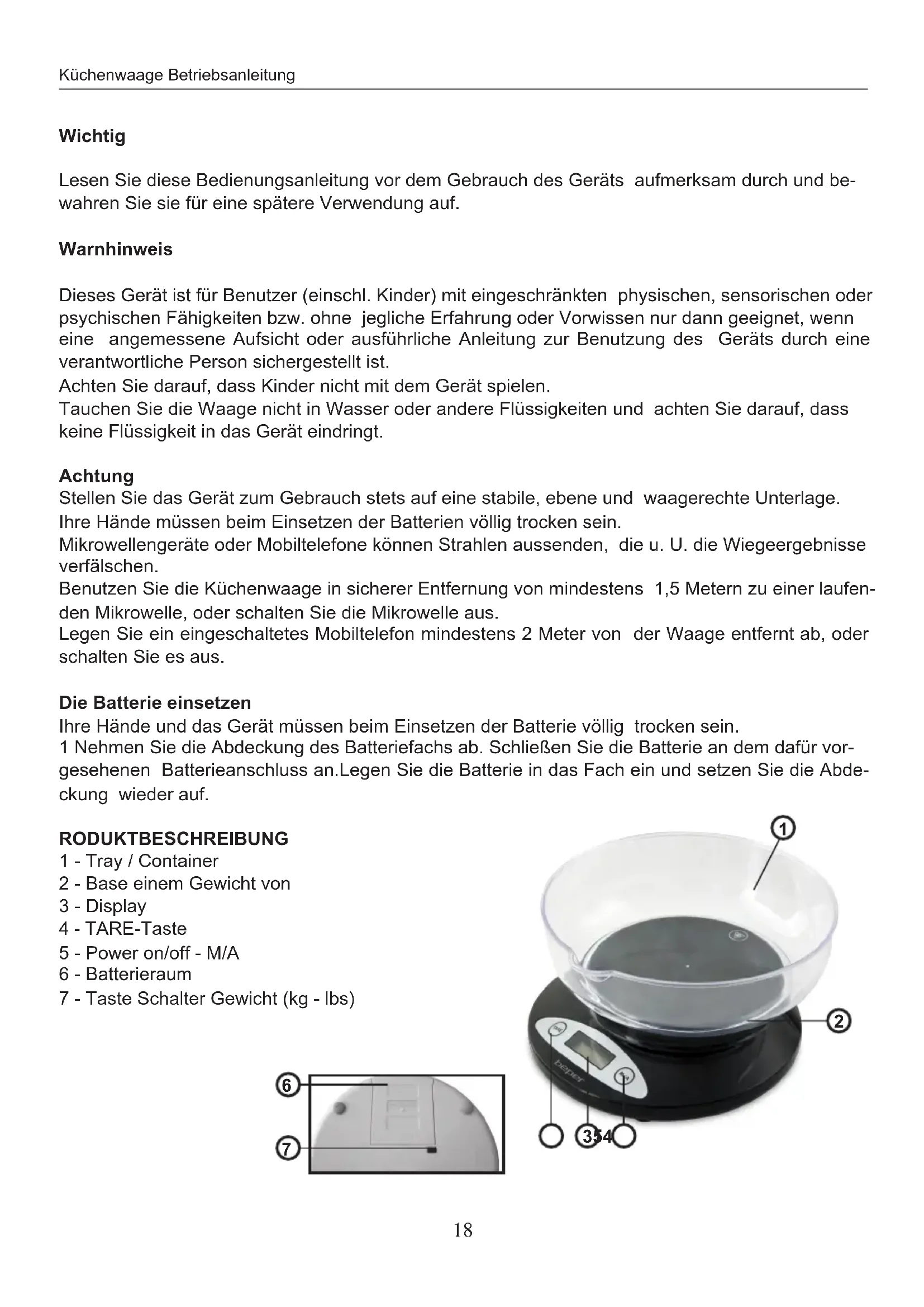 DEUTSCH Küchenwaage Betriebsanleitung Mit Schüssel wiegen