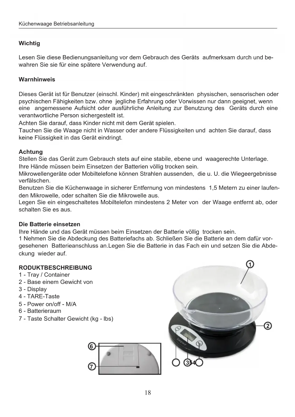 - KÜCHENWAAGE-BETRIEBSANLEITUNG