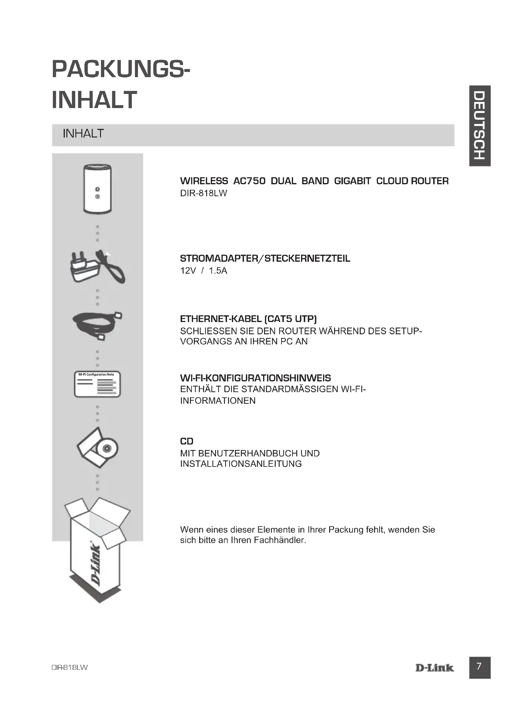 BEDIENUNGSANLEITUNG DIR818LW D-LINK
