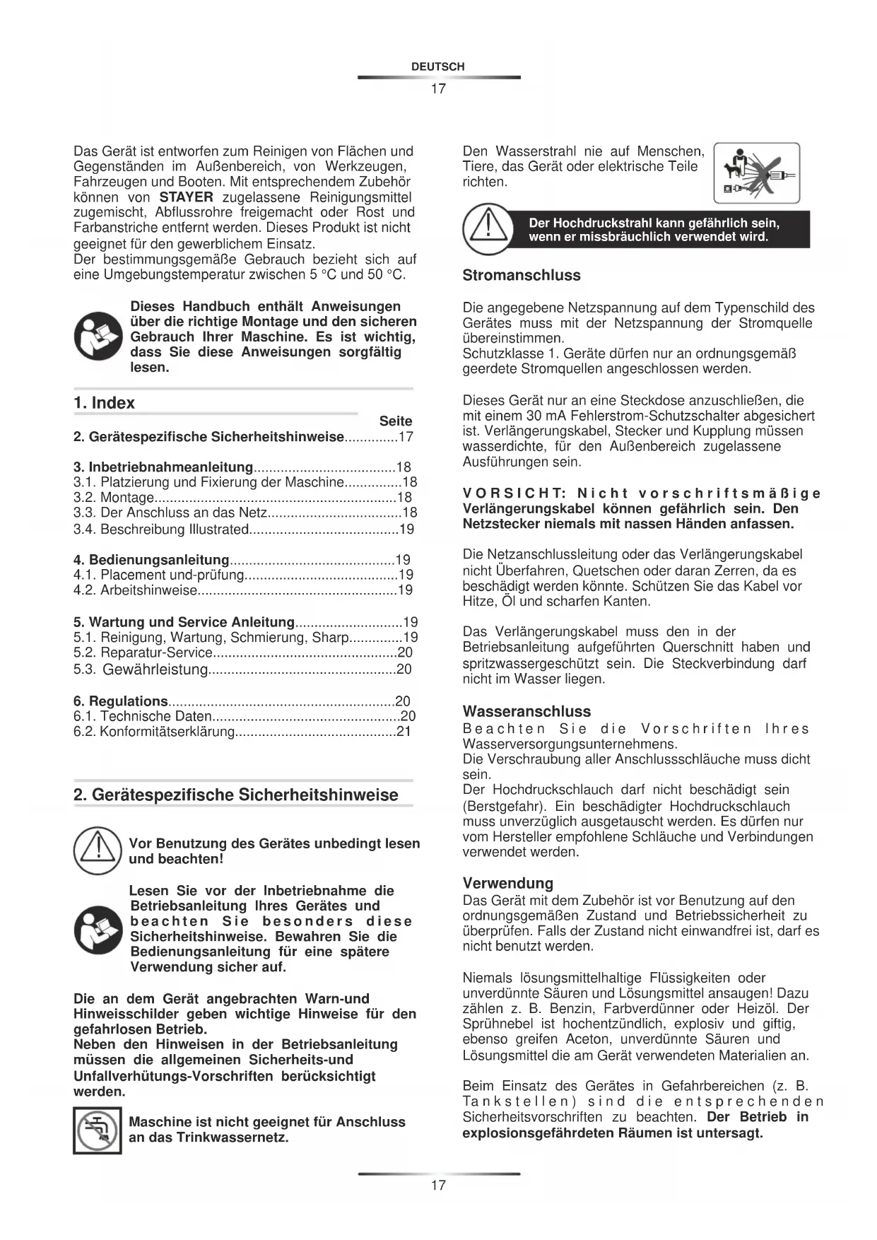 HL190 - Hochdruckreiniger Stayer - Kostenlose Bedienungsanleitung