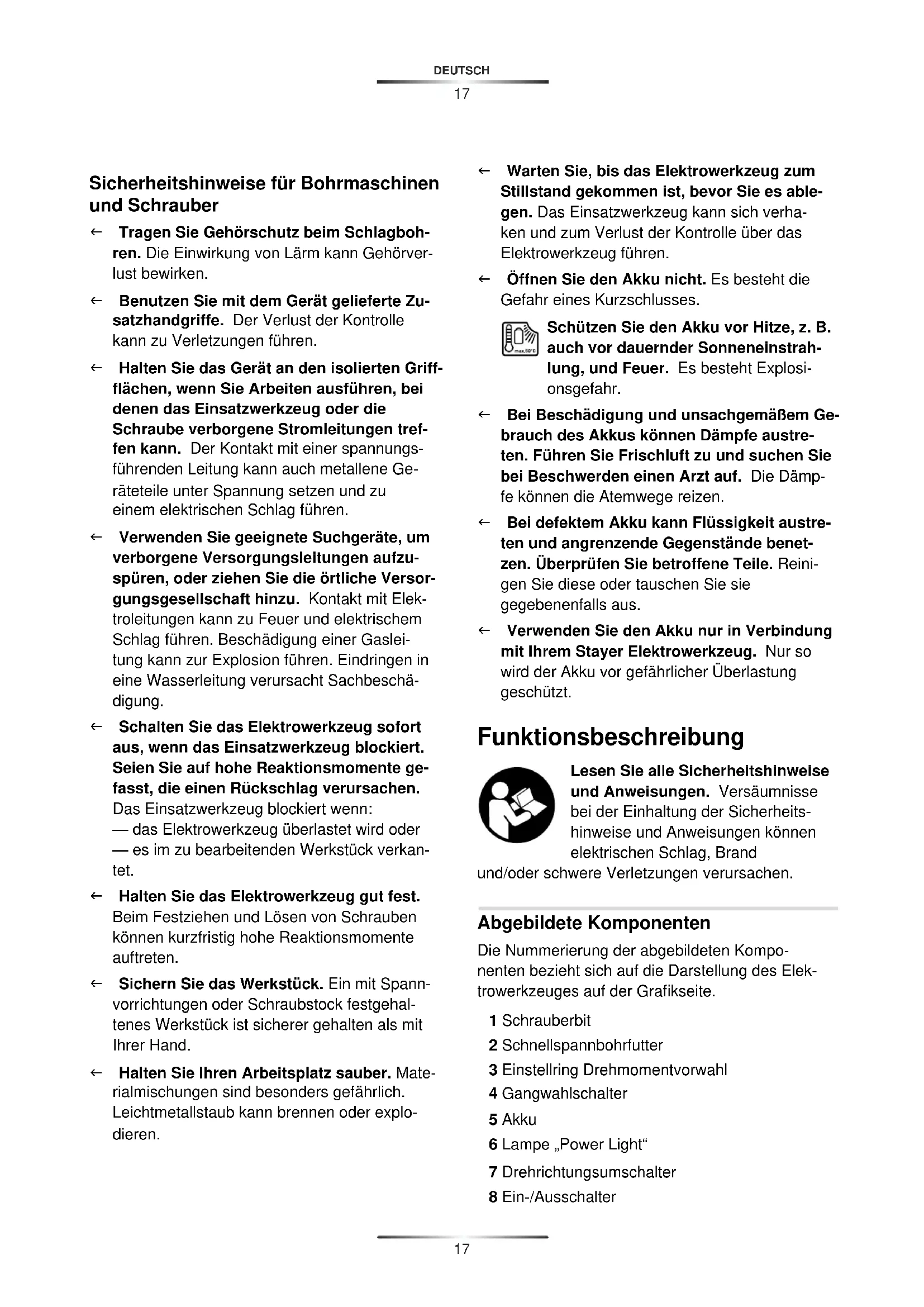 Sicherheitshinweise für Bohrmaschinen und Schrauber