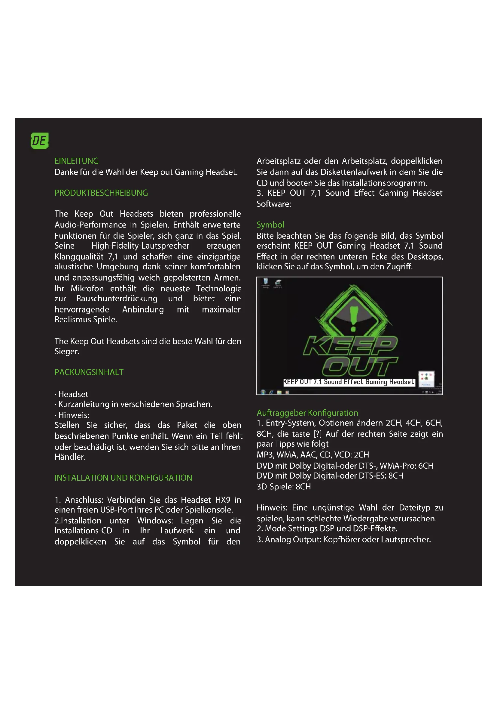 Für weitere Informationen zur Installation und Konfiguration dieses Produkt auf unserer Website www.keepout.eu gehen oder schreiben Sie eine E-Mail an die folgende Adresse: support@keep-out.eu.