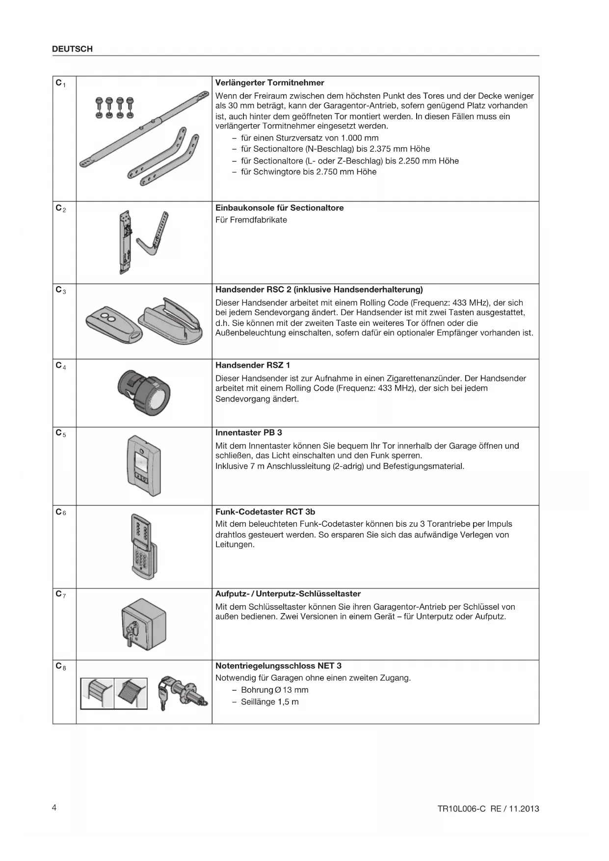 TR10L006-C RE / 11.2013 DEUTSCH2.6 Sicherheitshinweise zur Inbetriebnahme und zum Betrieb WARNUNG Verletzungsgefahr bei Torbewegung