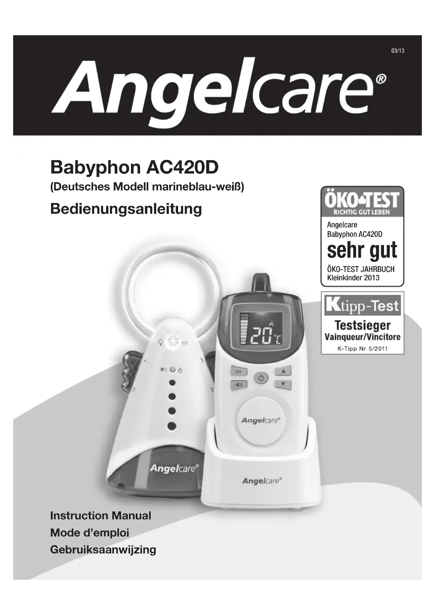 03/13 AC420D AngelcareBabyphon AC420DÖKO-TEST JAHRBUCHKleinkinder 2013sehr gut Instruction Manual Mode d’emploi Gebruiksaanwijzing AngelcareBabyphon AC420DÖKO-TEST JAHRBUCHKleinkinder 2013 sehr gut Babyphon AC420D (Deutsches Modell marineblau-weiß) Bedienungsanleitung 03/132 AC420D AngelcareBabyphon AC420DÖKO-TEST JAHRBUCHKleinkinder 2013 sehr gut Inhaltsverzeichnis Lieferumfang und Ausstattung Ihres Angelcare