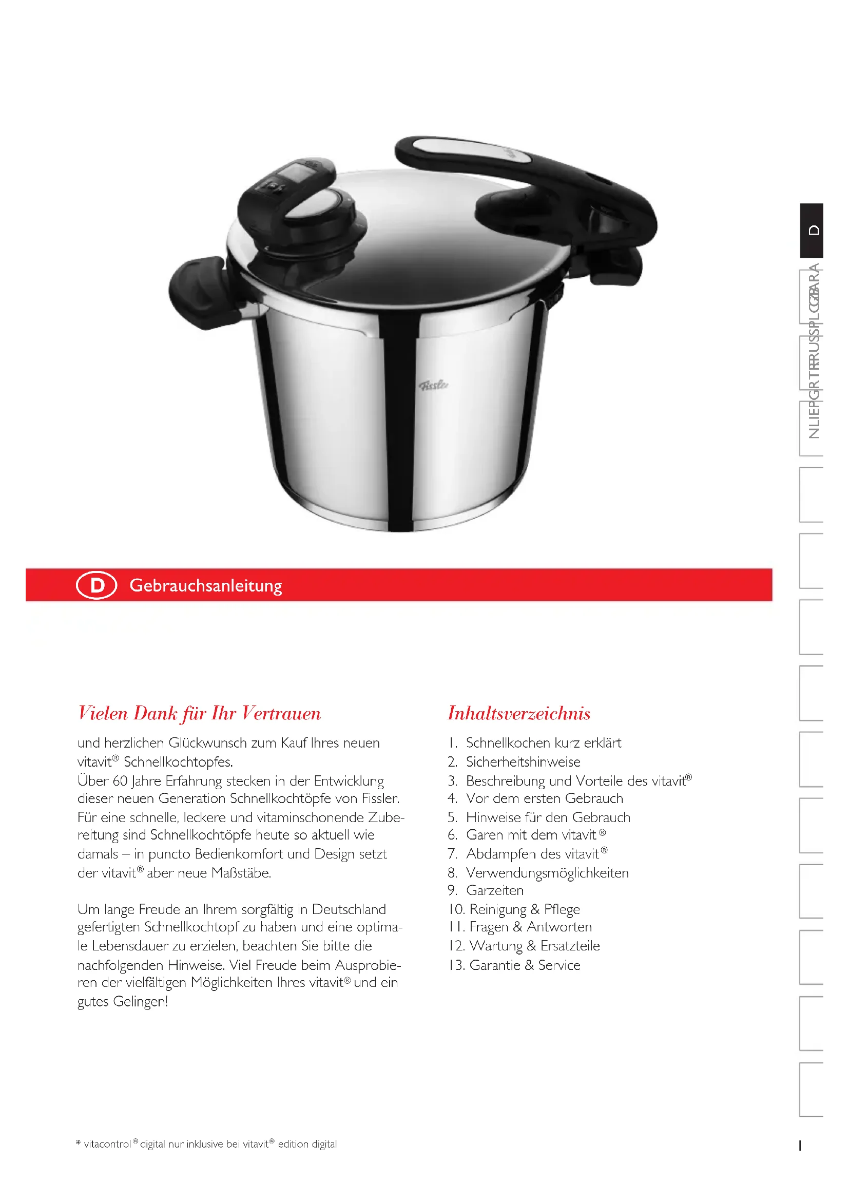 Vitavit Design - Kochtopf Fissler - Kostenlose Bedienungsanleitung