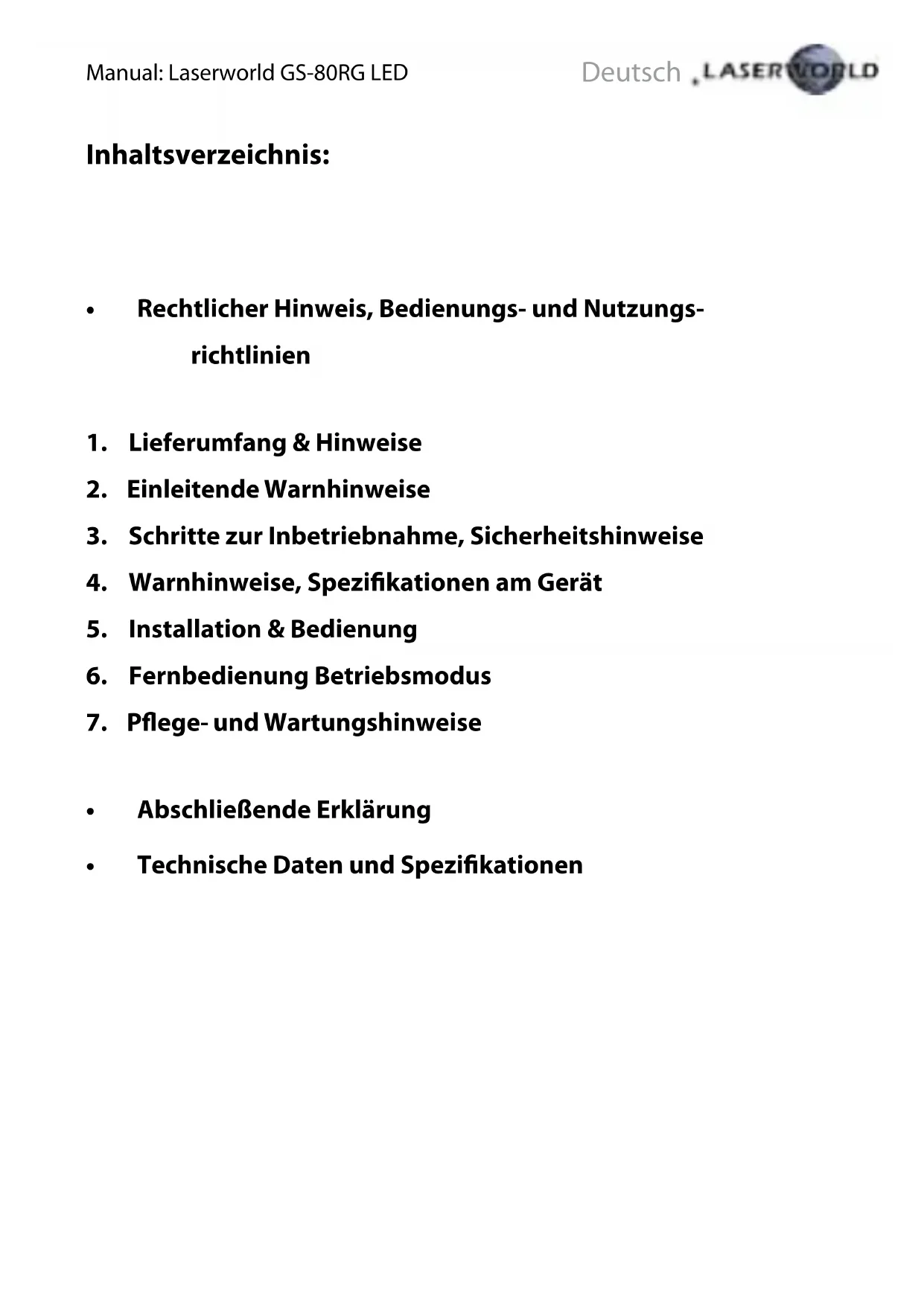 BEDIENUNGSANLEITUNG GS80RG LED Laserworld