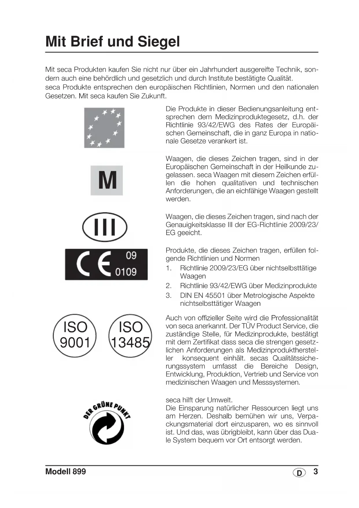 Waagen, die diesen Zeichen tragen, sind in der Europäischen Gemeinschaft in der Heilkunde zugelassen. seca Waagen mit diesen Zeichen erfüllen die hohen qualitativen und technischen Anforderungen, die an eichfähige Waagen gestellt werden.