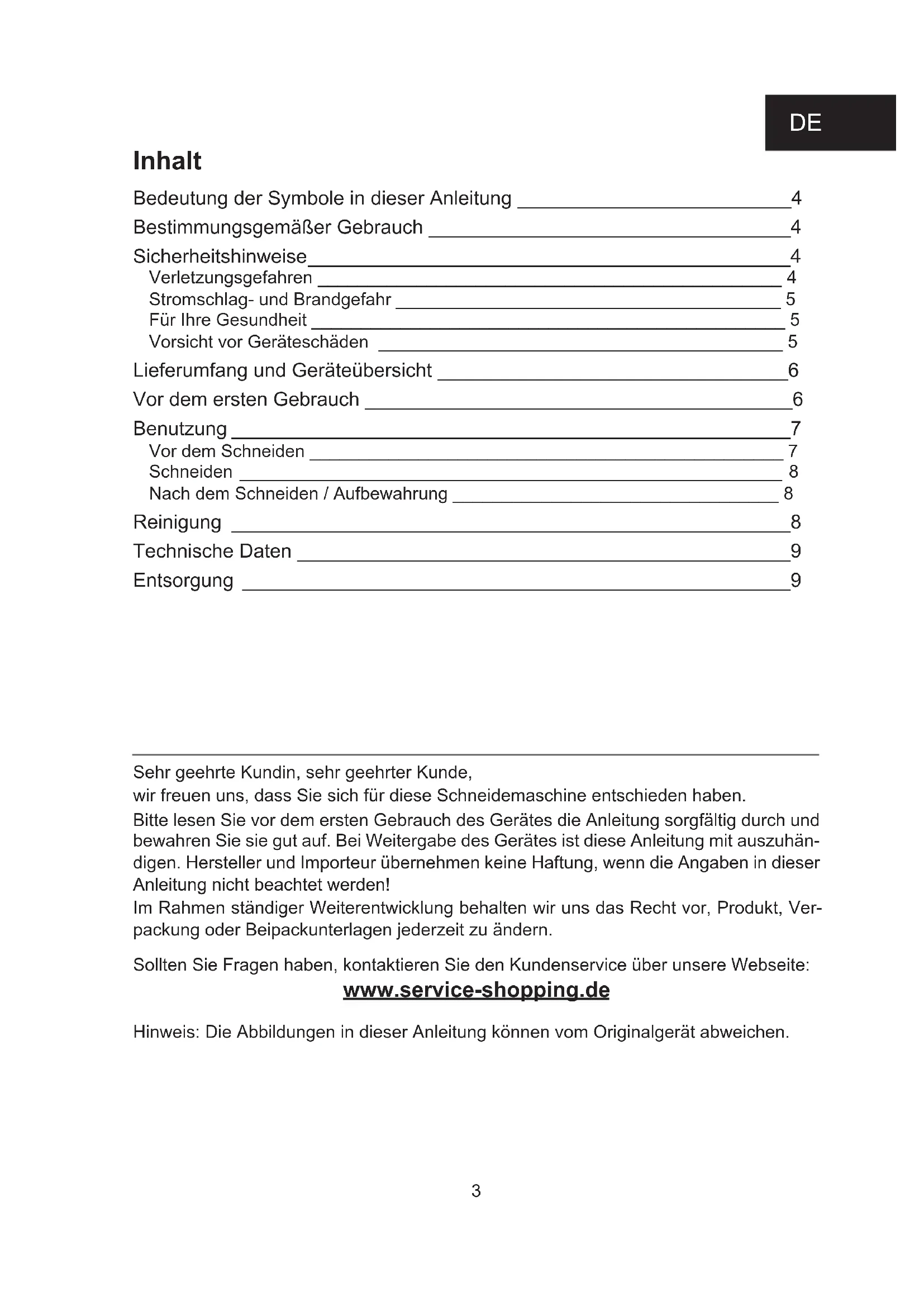 Laden Sie die Anleitung für Ihr Schneidemaschine kostenlos im PDF-Format! Finden Sie Ihr Handbuch Z 00166 - Gourmetmaxx und nehmen Sie Ihr elektronisches Gerät wieder in die Hand. Auf dieser Seite sind alle Dokumente veröffentlicht, die für die Verwendung Ihres Geräts notwendig sind. Z 00166 von der Marke Gourmetmaxx.