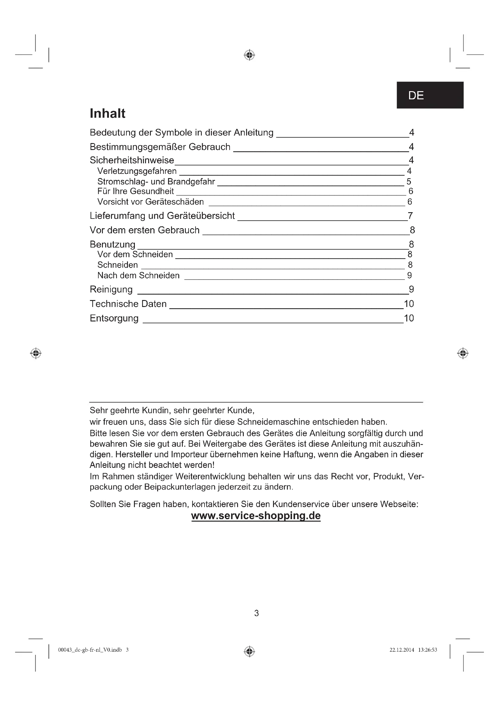 Sollten Sie Fragen haben, kontaktieren Sie den Kundenservice über unsere Websites: www.service-shopping.de
