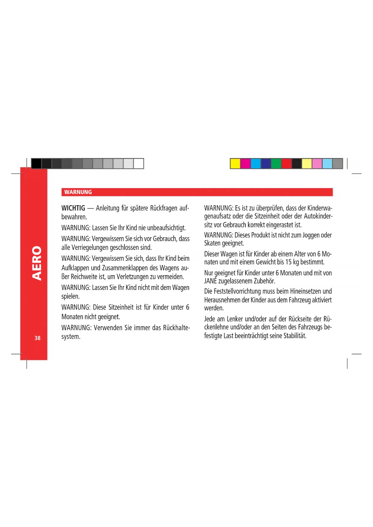 Aero - Kinderwagen JANE - Kostenlose Bedienungsanleitung