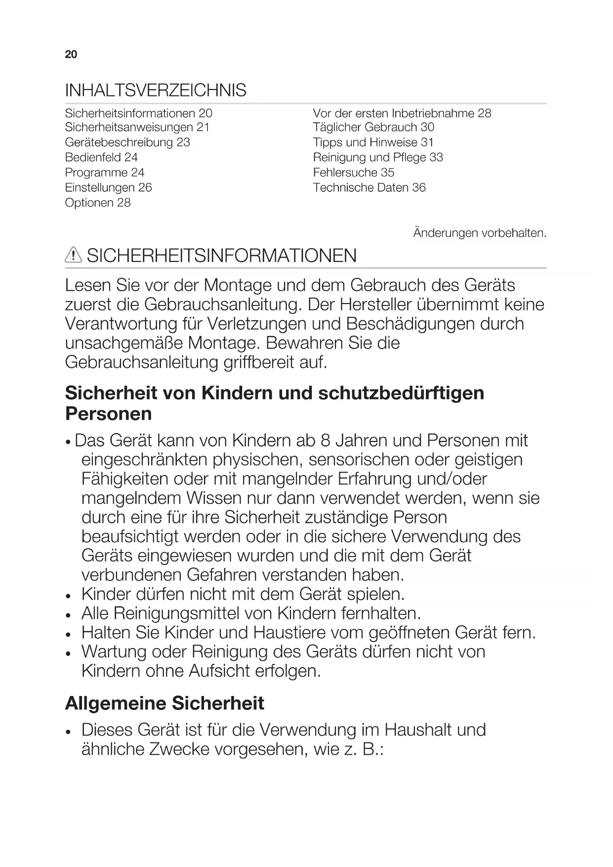 Dieses Gerät ist für die Verwendung im Haushalt und ähnliche Zwecke vorgesehen, wie z. B.: 20– Bauernhöfe, Personalküchenbereiche in Geschäften, Büros und anderen Arbeitsumfeldern. – Für Gäste in Hotels, Motels, Pensionen und anderen wohnungsähnlichen Räumlichkeiten.