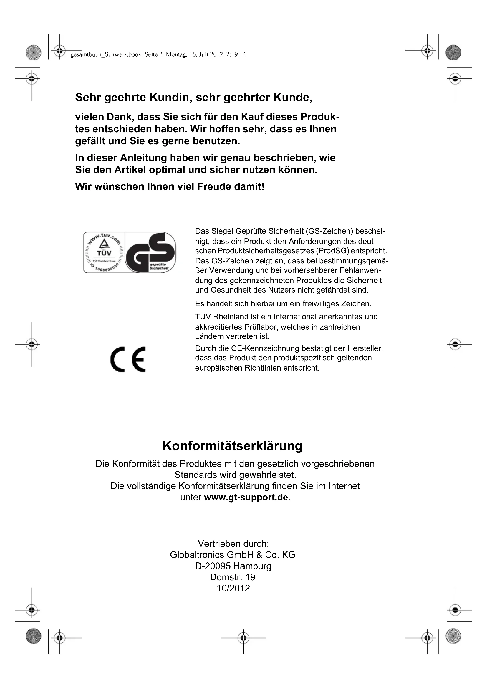 Die vollständige Konformitätserklung finds Sie im Internet unter www.gt-support.de.