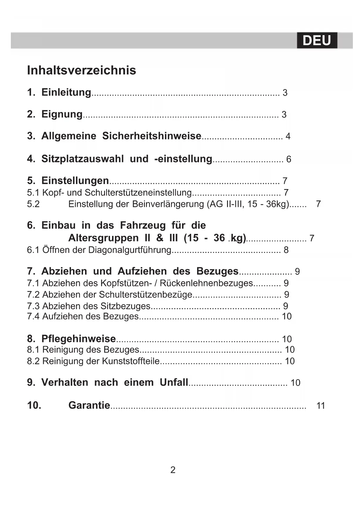 5.2 Einstellung der Beinverlängerung (AG II-III, 15 - 36kg)....... 7