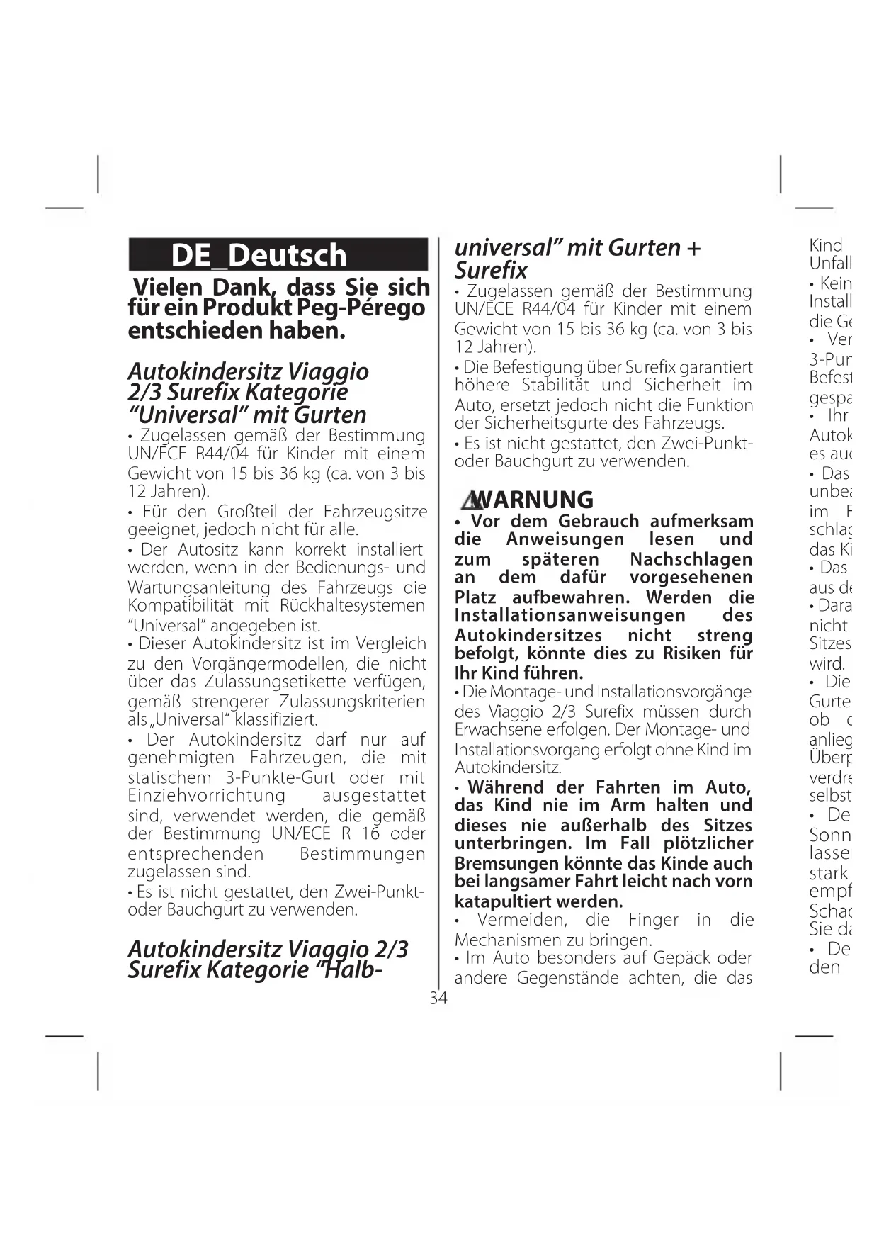 BEDIENUNGSANLEITUNG Viaggio 23 Surefix PEG PEREGO