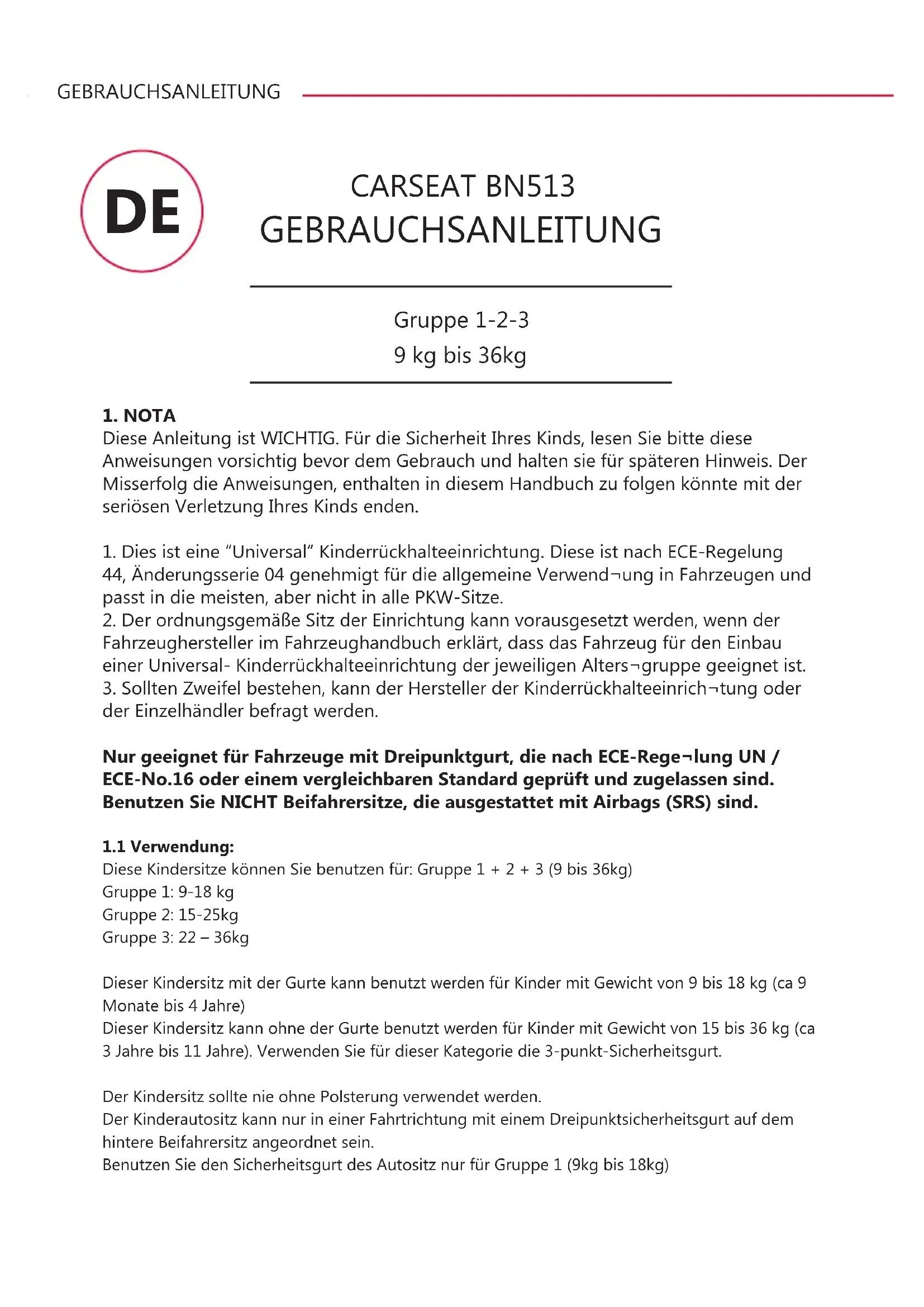 CARSEAT BN513 GEBRAUCHSANLEITUNG