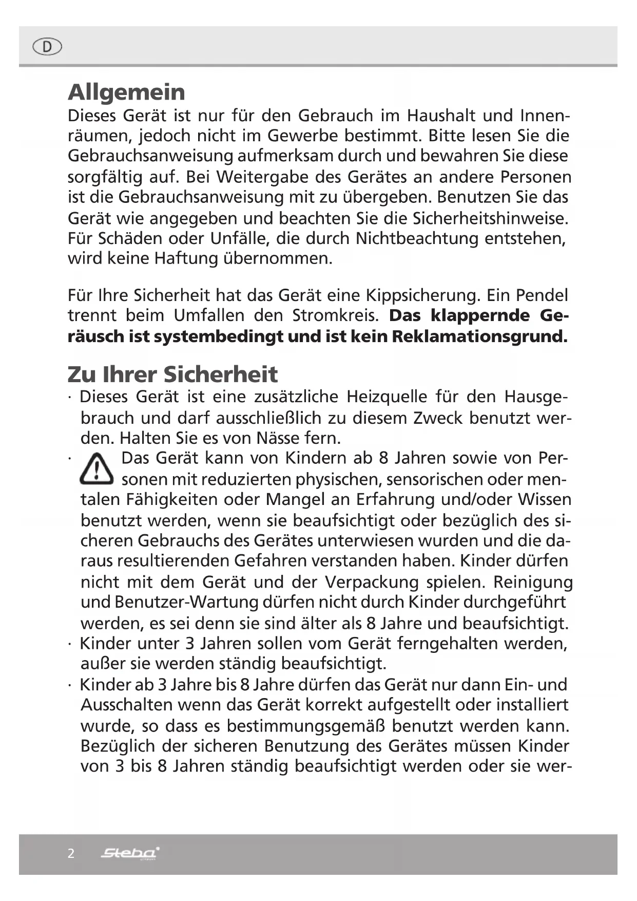 BEDIENUNGSANLEITUNG KH 7 STEBA