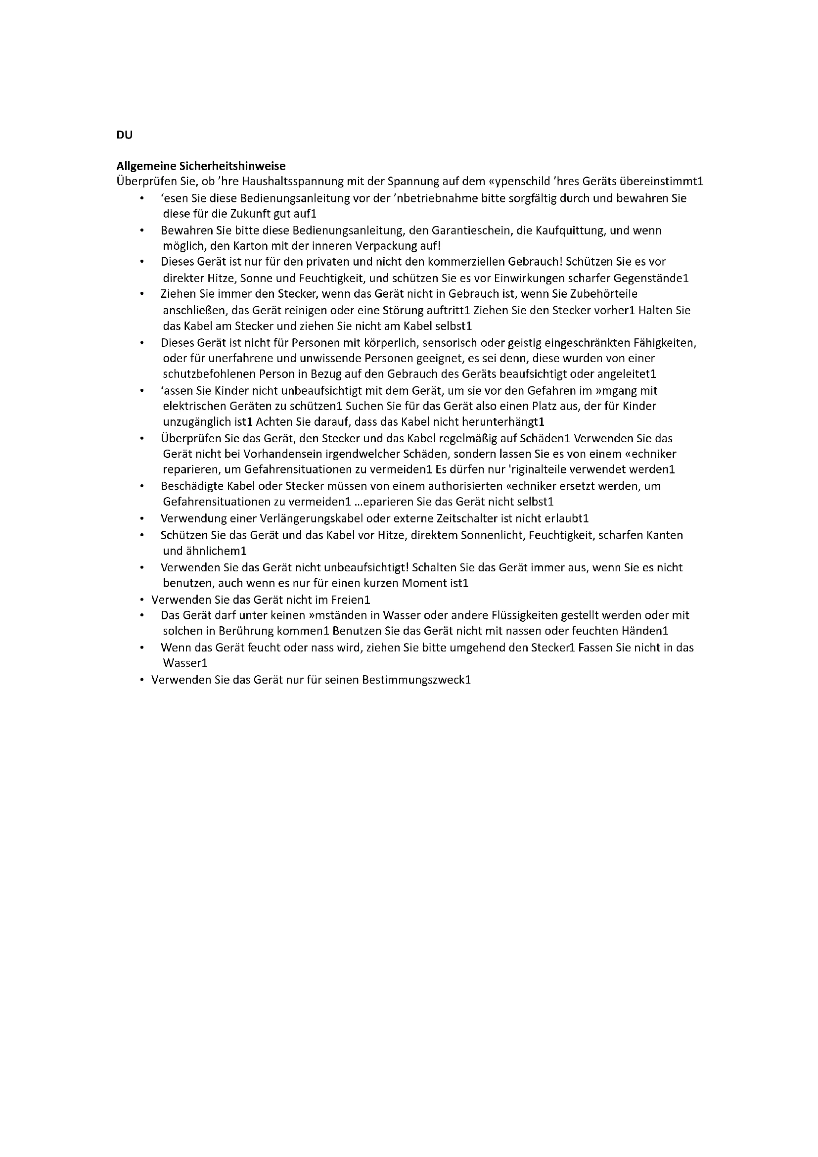 - Dieses Gerät ist nur für den privaten und nicht den kommerziellen Gebrauch! Schützen Sie es vor direkter Hitze, Sonne und Feuchtigkeit, und schützen Sie es vor Einwirkungen scharfer Gegenstände.