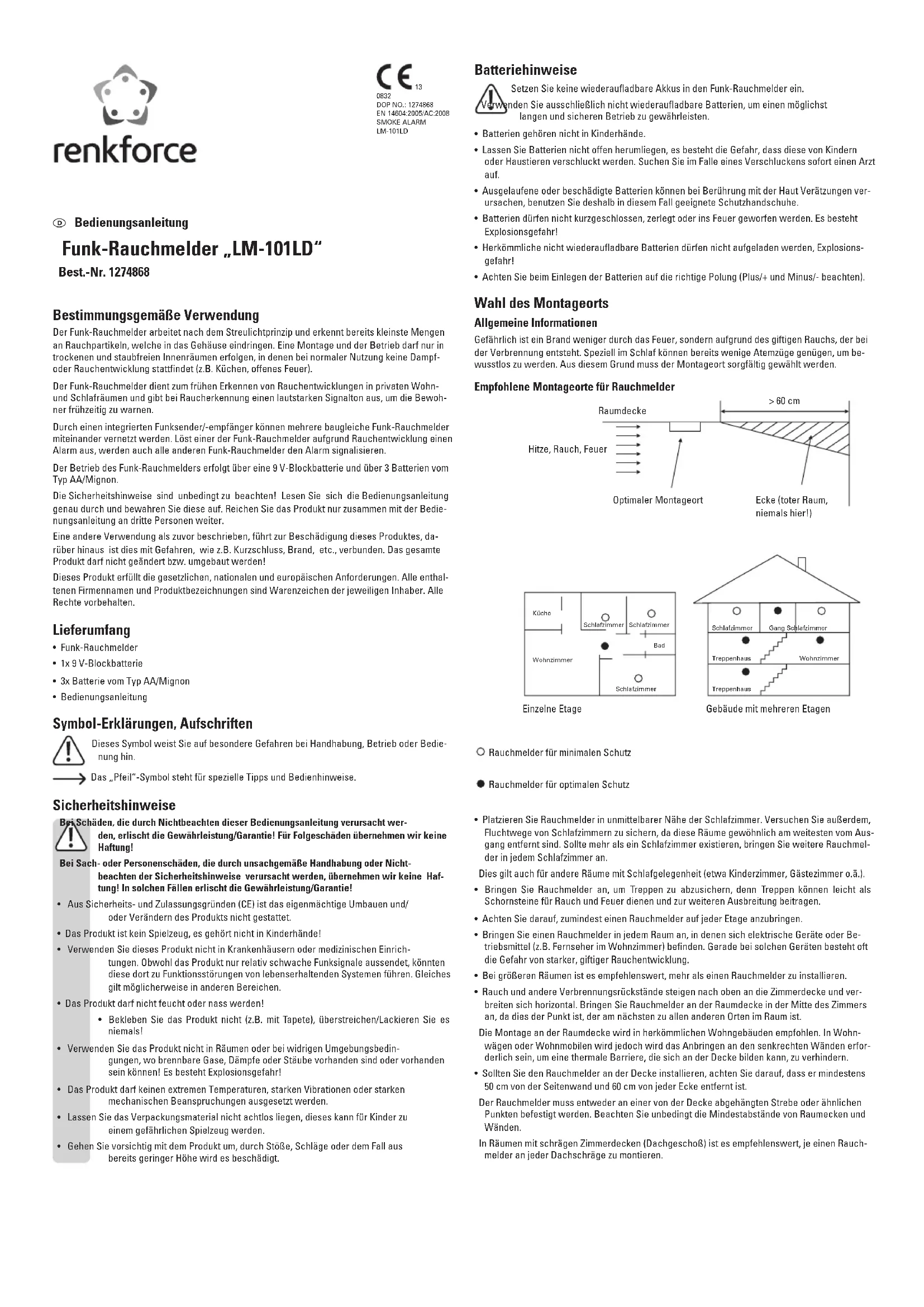 LM101LD - Rauchmelder Renkforce - Kostenlose Bedienungsanleitung